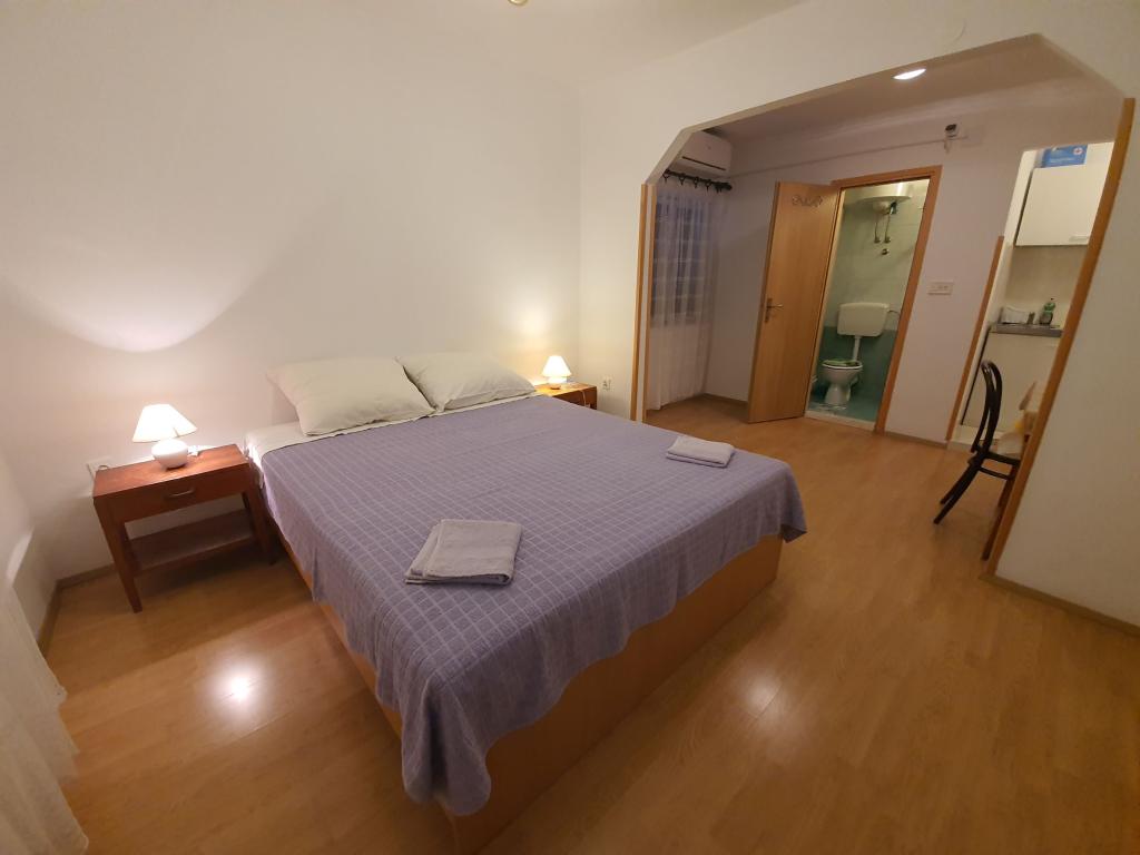 Toni appartements sont situés dans Pirovac front de mer, à 5 minutes à pied du centre. Ils sont sur la première étage. Tous les appartements sont orientés au sud avec une terrasse qui offre une vue imprenable sur la plage. Un parking est disponible. Dans le jardin il ya une douche extérieure. Le prix de location comprend tous les plats et les ustensiles dans la cuisine, les serviettes et le linge de lit.