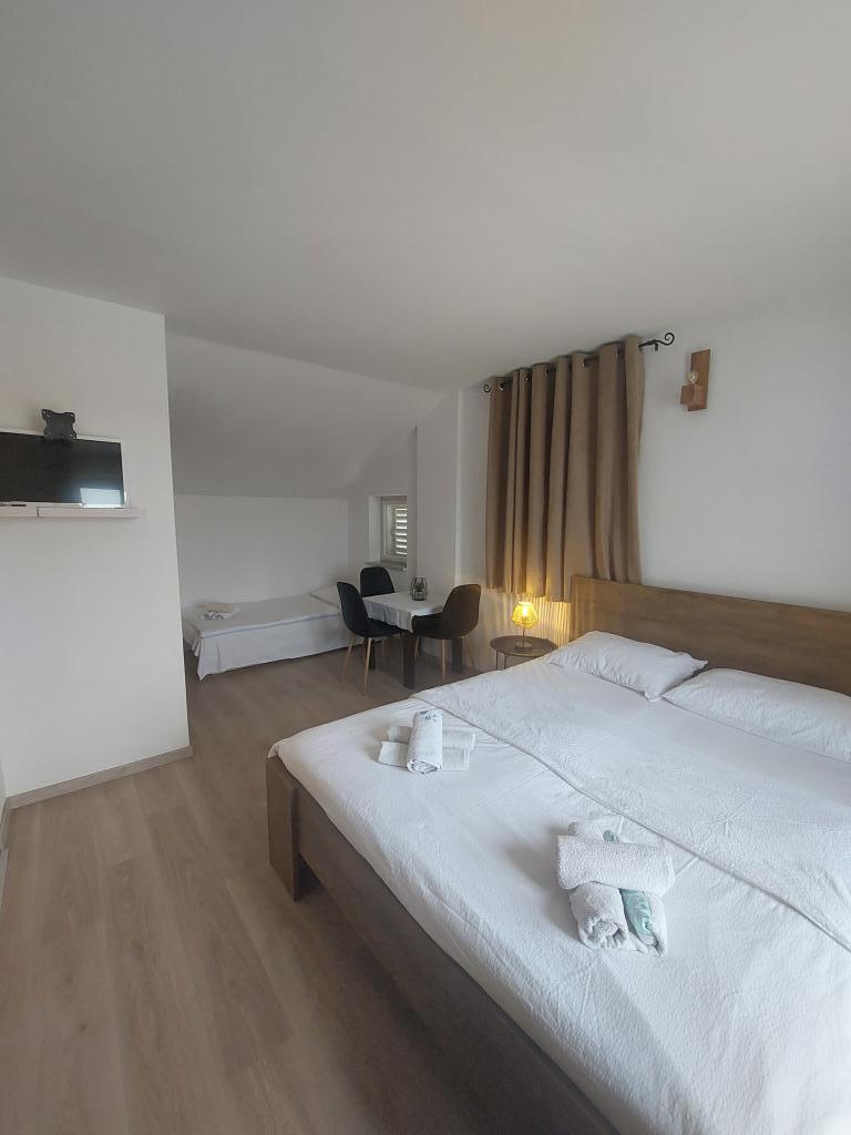 Unités d'hébergementPour la réservation, il est nécessaire de payer un acompte conformément à l'accord. Le reste du paiement à l'arrivée. Le prix de l'appartement est pour deux personnes, chaque personne supplémentaire est facturée 10,00 € supplémentaires. L'enregistrement à l'hébergement s'effectue à partir de 13h00 (si l'appartement est prêt, il peut être plus tôt). Départ avant 10h00. La taxe de séjour est incluse dans le prix. Nous envoyons la confirmation de réservation par écrit.