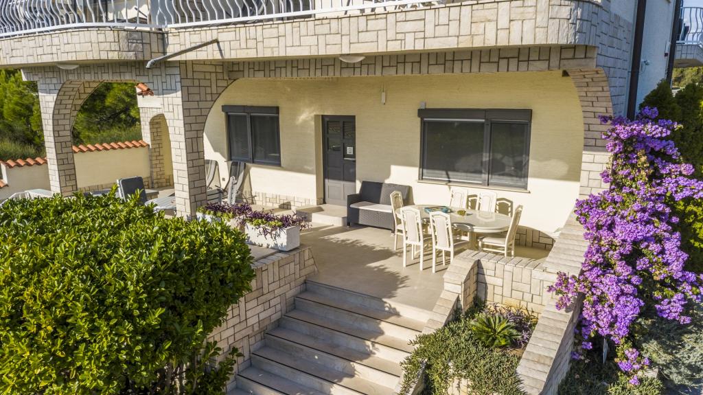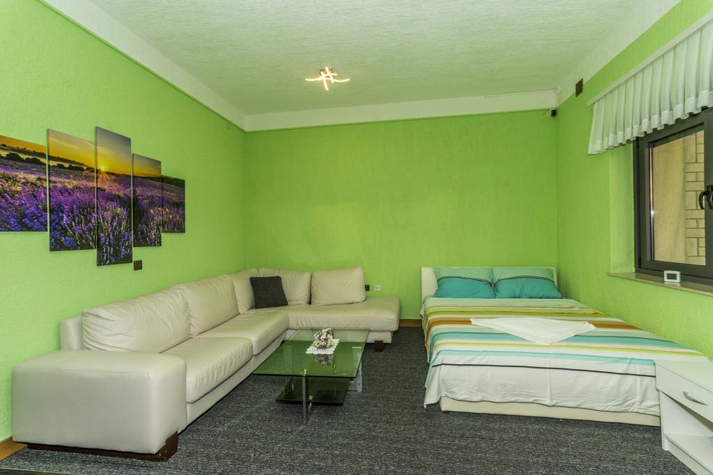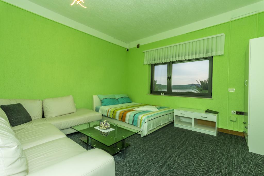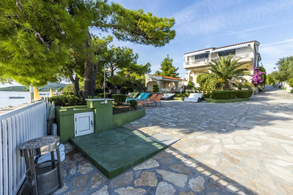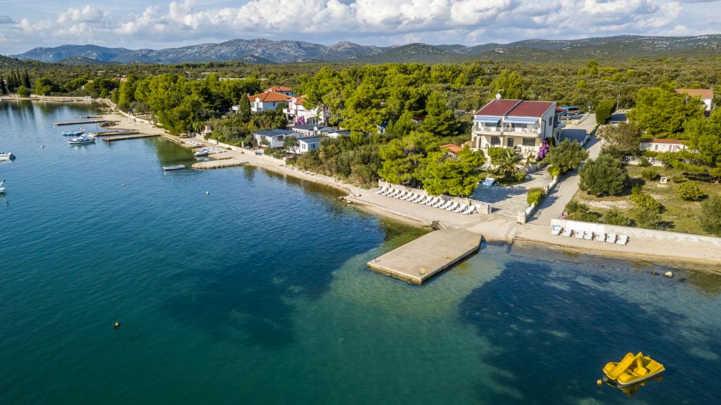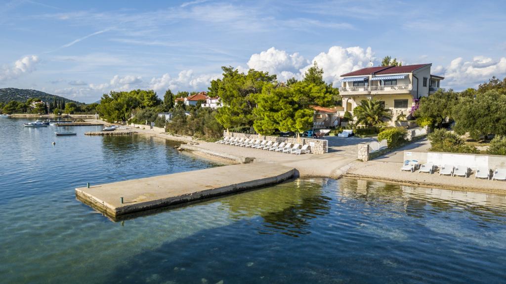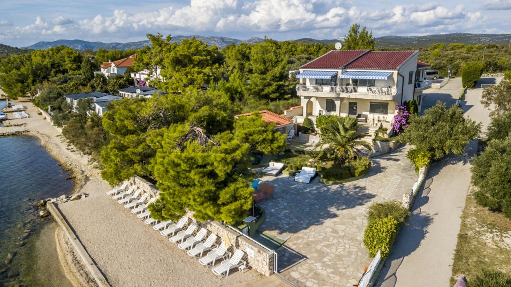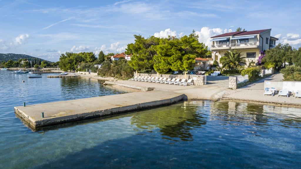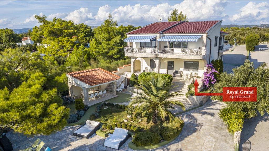Villa Punta Royal est situé à côté de la mer dans une baie tranquille et possède sa propre plage de galets. La mer est peu profonde et devient plus profonde quand il en va de la côte, ce qui est parfait pour les petits enfants. En face de la Villa est un jardin méditerranéen où vous pourrez profiter des charmes de la Dalmatie et la mer Adriatique. Tout est en un seul endroit, vous ne devez pas vous inquiéter avec le stockage de vos biens pour aller à la plage parce que votre appartement est à seulement 15 mètres de la plage qui est en face de la Villa. Internet sans fil est disponible gratuitement dans l'ensemble de Villa et toute la plage. Le parking est à côté de la Villa et est gratuit pour tous nos clients. Des chaises longues et des parasols dans le jardin méditerranéen et à la plage sont fournis pour tous nos invités et sont gratuits. Les appartements sont modernes et entièrement équipées pour le logement de la famille. Nous sommes situés au milieu de la côte adriatique de telle sorte que toutes les attractions locales de la Dalmatie près de nous. Profitez de vos vacances, alors que pour vous à Villa Punta Royal, toujours quelqu'un disponible 24 heures par jour.