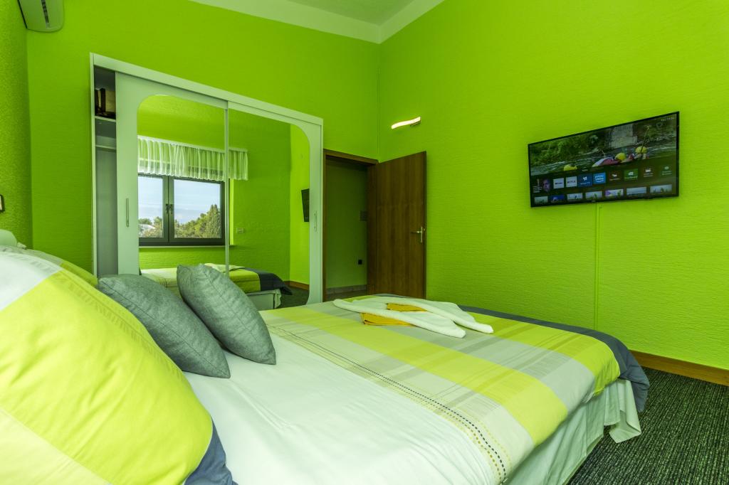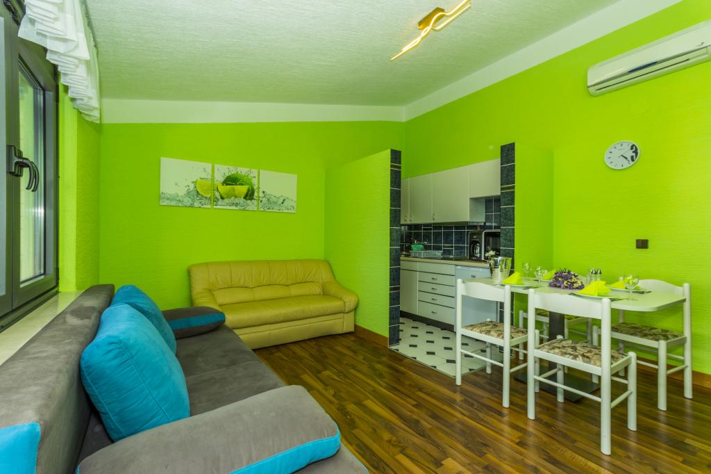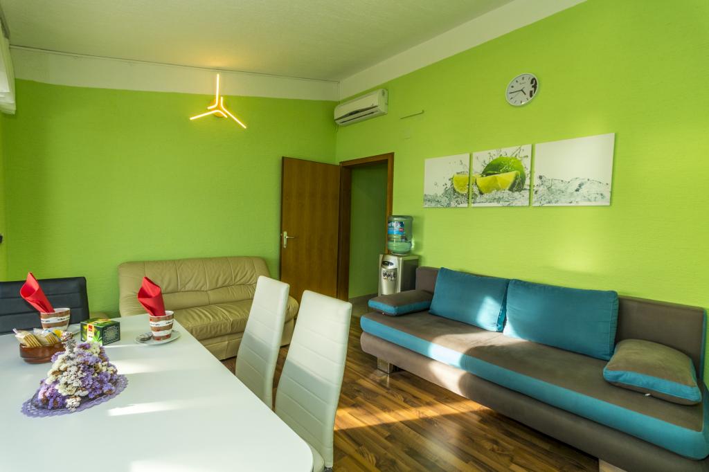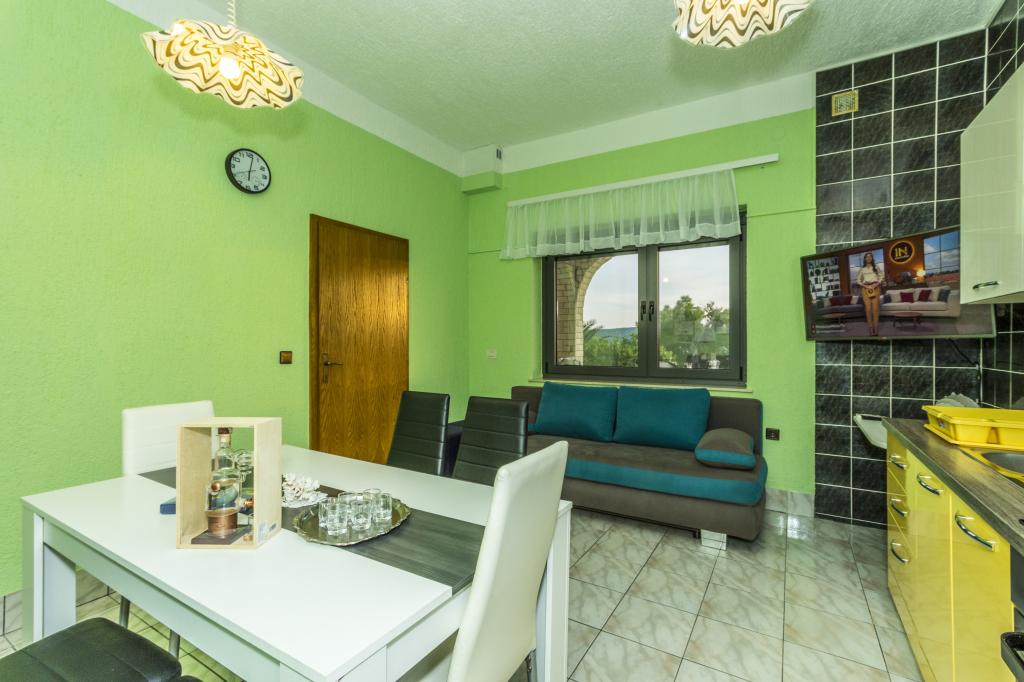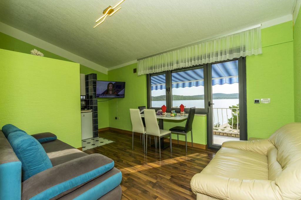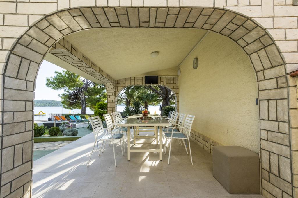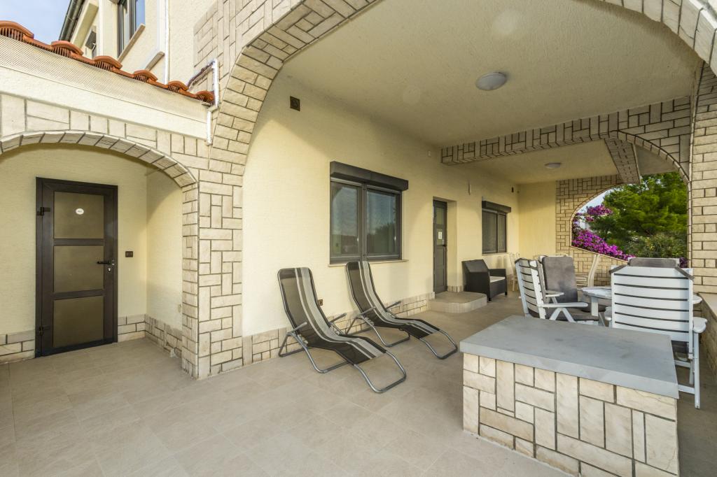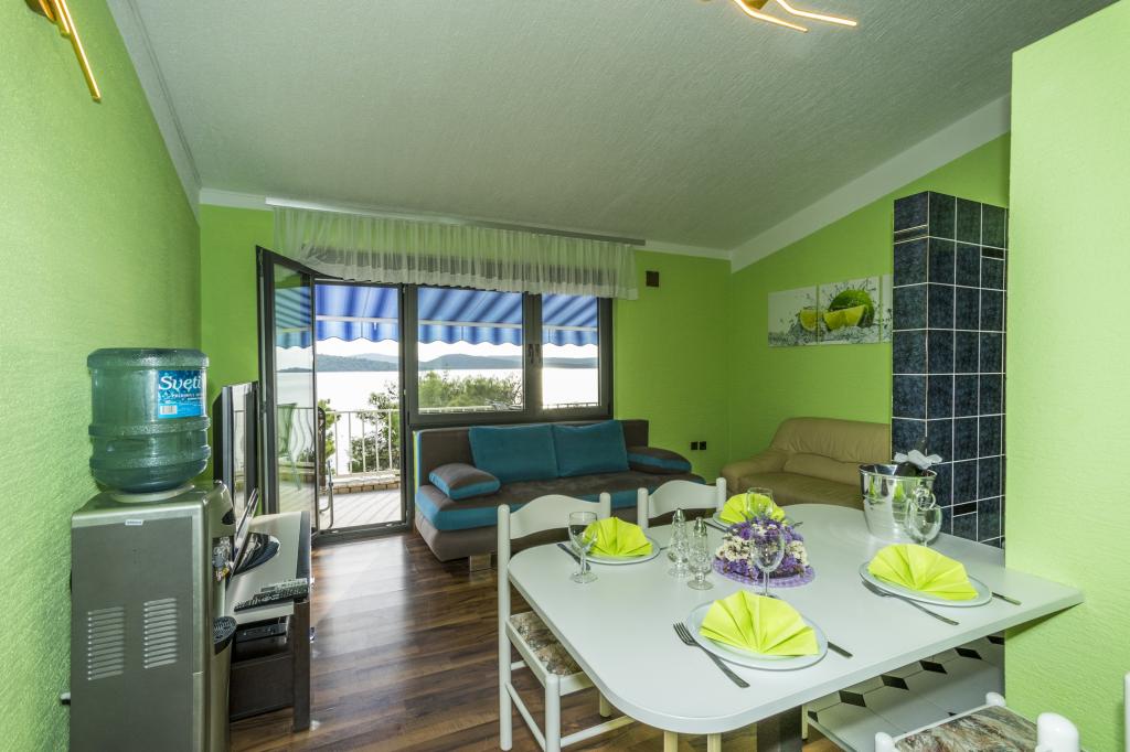 Villa Punta Royal est situé à côté de la mer dans une baie tranquille et possède sa propre plage de galets. La mer est peu profonde et devient plus profonde quand il en va de la côte, ce qui est parfait pour les petits enfants. En face de la Villa est un jardin méditerranéen où vous pourrez profiter des charmes de la Dalmatie et la mer Adriatique. Tout est en un seul endroit, vous ne devez pas vous inquiéter avec le stockage de vos biens pour aller à la plage parce que votre appartement est à seulement 15 mètres de la plage qui est en face de la Villa. Internet sans fil est disponible gratuitement dans l'ensemble de Villa et toute la plage. Le parking est à côté de la Villa et est gratuit pour tous nos clients. Des chaises longues et des parasols dans le jardin méditerranéen et à la plage sont fournis pour tous nos invités et sont gratuits. Les appartements sont modernes et entièrement équipées pour le logement de la famille. Nous sommes situés au milieu de la côte adriatique de telle sorte que toutes les attractions locales de la Dalmatie près de nous. Profitez de vos vacances, alors que pour vous à Villa Punta Royal, toujours quelqu'un disponible 24 heures par jour.