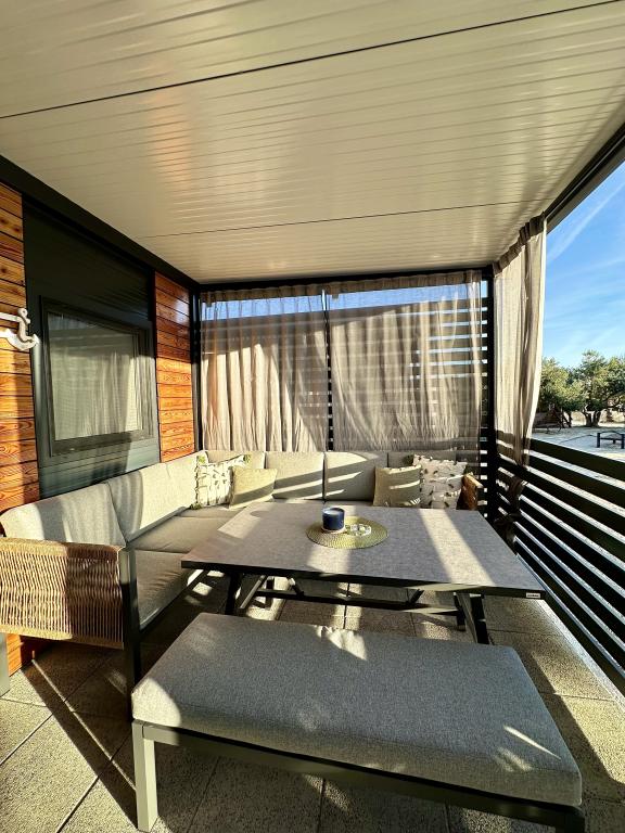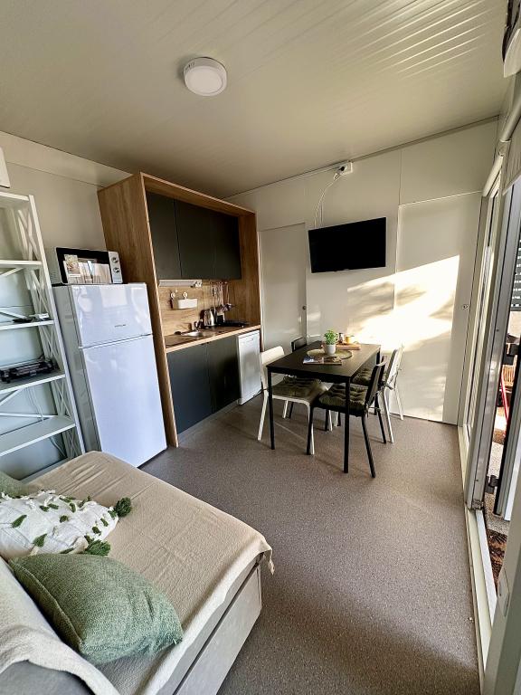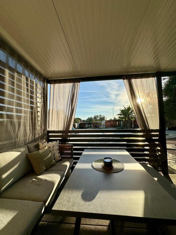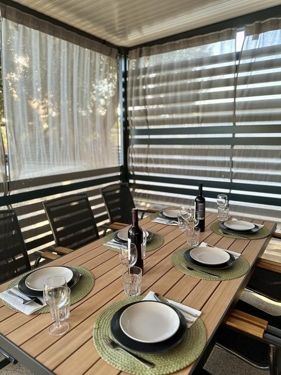 Mobil-home Maslina – Votre havre de paix en bord de mer. Bienvenue au Mobil-home Maslina, un mobil-home à la décoration moderne situé dans un quartier calme de Pirovac, à seulement 200 m de la plage. Pouvant accueillir jusqu'à 5 personnes, il dispose de deux chambres avec un total de 4 lits, d'un salon avec canapé-lit, d'une cuisine équipée et d'une salle de bain. Profitez de la grande terrasse couverte donnant sur la piscine, idéale pour un café matinal ou une détente en soirée. Un parking est également disponible. Le Mobil-home Maslina est idéal pour des vacances en famille, au calme, en pleine nature et à proximité de la mer. Découvrez l'hospitalité dalmate et réservez vos vacances dès aujourd'hui !