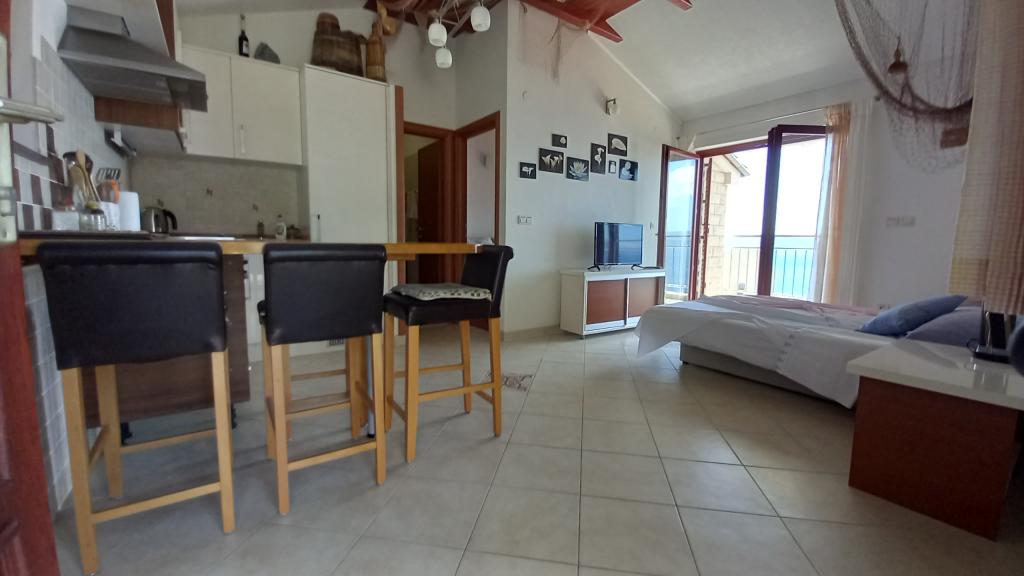 Des hôtes formidables (merci pour l'excellent gâteau aux noix maison, les figues sucrées et les barres chocolatées) et un superbe appartement avec une vue magnifique sur la mer et les îles depuis la belle terrasse et le transat étaient la cerise sur le gâteau. La cuisine offrait tout le nécessaire. Le lit et le lit d'appoint étaient parfaits pour dormir. Si vous avez besoin de repos et de tranquillité, c'est l'endroit idéal. Deux plages à proximité : l'une plus difficile d'accès, l'autre plus facile ; même avec un enfant, aucun problème. Je recommande également la plage du centre-ville (à 10 minutes à pied). Deux tavernes, un café et une boulangerie proposent du bon pain et d'excellentes pizzas. Emplacement idéal pour les excursions. Je recommande sans hésiter.