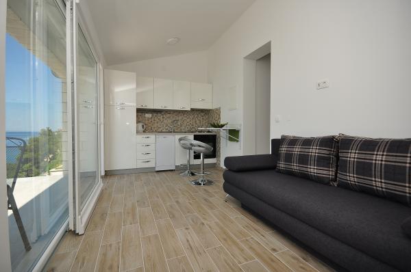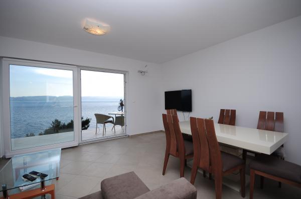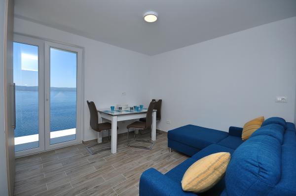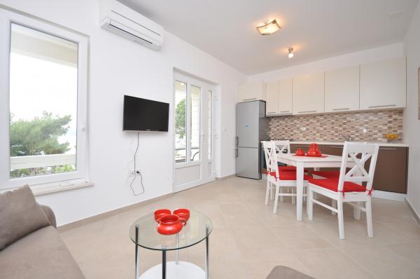 Appartements modernes et confortables au premier rang de la mer (40m). Chaque appartement dispose d'un balcon donnant sur la mer et l'île de Brac. Au-dessous de la maison se trouve une entrée privée à la mer (plage de béton) et une partie privée pour bronzer et se mettre à l'ombre. Les appartements disposent de la climatisation, TV satellite, wifi. Nous avons une place de parking sécurisée devant la maison. Dans la cour il y a une douche et un barbecue communs. Le centre ville est à 400m (boutique / restaurants). La plage de galets la plus proche est à environ 200 mètres, tandis que la plus grande plage est à 400 mètres. Le quartier est calme. Les villes d'Omis et de Makarska sont très proches (18 km), tout comme les îles de Brac et de Hvar. Vous pouvez profiter d'activités telles que la plongée, la location d'un bateau et la voile. Lieu idéal pour le repos et la détente.