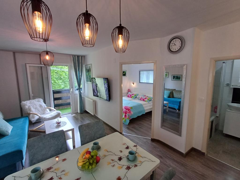 Les appartements sont situés à Mukinje, un petit quartier résidentiel avec toutes les commodités nécessaires. L'entrée Ud 2 est à 15 minutes à pied. Ils se trouvent à 250 mètres des remontées mécaniques et de la piste de ski. Ils sont situés dans un immeuble résidentiel au rez-de-chaussée (seulement 5 marches). Ils ont des entrées communes et ont récemment été entièrement rénovés. se compose de deux unités. Des studios pour deux personnes et des appartements avec une chambre et un balcon pour 4 personnes. il est possible de louer les deux unités ensemble et d'obtenir un appartement luxueux avec deux chambres, une cuisine, deux salles de bains et un balcon privé idéal pour le plaisir en famille sur les lacs de Plitvice.