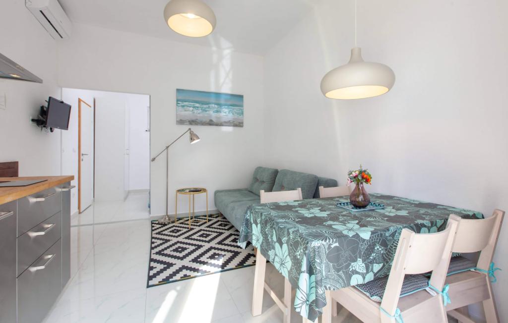 Appartement Višnja est situé dans une maison en pierre nouvellement construite dans l'une des parties les plus belles et calmes de Podgora - Čaklje. Appartement Višnja est situé au rez-de-chaussée de la maison et est un pas de la belle plage de galets et est décoré selon les dernières normes et comprend la climatisation, TV satellite, wi-fi et un parking. Avec l'obzirorm au rez-de-chaussée, il est idéal pour les personnes à mobilité réduite. Peut-être l'un des plus grands adout de cet appartement est la terrasse située au premier étage de la maison, donnant sur la belle marina Čaklje et les deux îles médiévales de Brac et Hvar. Cet appartement offre un vrai sentiment de méditerranée et de tranquillité, parce que l'appartement Višnja est situé dans la partie de Čakalja, qui est presque complètement dépourvue de trafic et d'urgence. Mais si vous avez envie de "bouger", l'appartement Višnja se trouve à 500 m du centre de Podgora où vous trouverez des restaurants et des cafés, bien que Čaklje ait une petite boutique à 100 m des appartements et quelques restaurants et cafés. L'ATM est à 100 m de l'appartement.