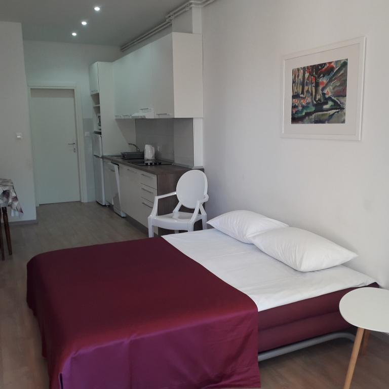 L'appartement est moderne et très bien équipé, il a tout ce qu'il faut pour passer un agréable séjour. Un balcon spacieux avec une belle vue sur la mer, qui est très proche. L'hôtesse est agréable et toujours à votre service. Nous cherchions quelque chose comme ça depuis longtemps et maintenant nous savons où nous passerons notre été l'été prochain. Recommandation à tout le monde.