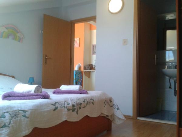 Nous sommes très heureux d'avoir choisi cet hébergement pour notre séjour à Podgora. La chambre était joliment décorée, propre et confortable, la taille pour deux était juste. Nous n'avons rien manqué du tout. La chambre a une belle vue sur les montagnes, que nous apprécions tous les jours depuis la grande terrasse. Ce n'était pas loin de la plage, à environ 10 min. Il y avait plusieurs plages de galets au choix, soit juste à côté des restaurants, soit des plages plus calmes avec une vue magnifique sur les îles voisines et les montagnes de Biokovo. Juste à côté de l'hébergement, vous trouverez également un sentier de randonnée menant à Horní Podgora, qui offre une vue incroyablement belle sur Podgora elle-même, la mer et les îles. La propriétaire était incroyablement gentille et serviable. Dès le premier instant, elle était très disposée à répondre à n'importe quelle question. Nous recommandons vivement cet hébergement et nous y retournerons certainement pour nous-mêmes.