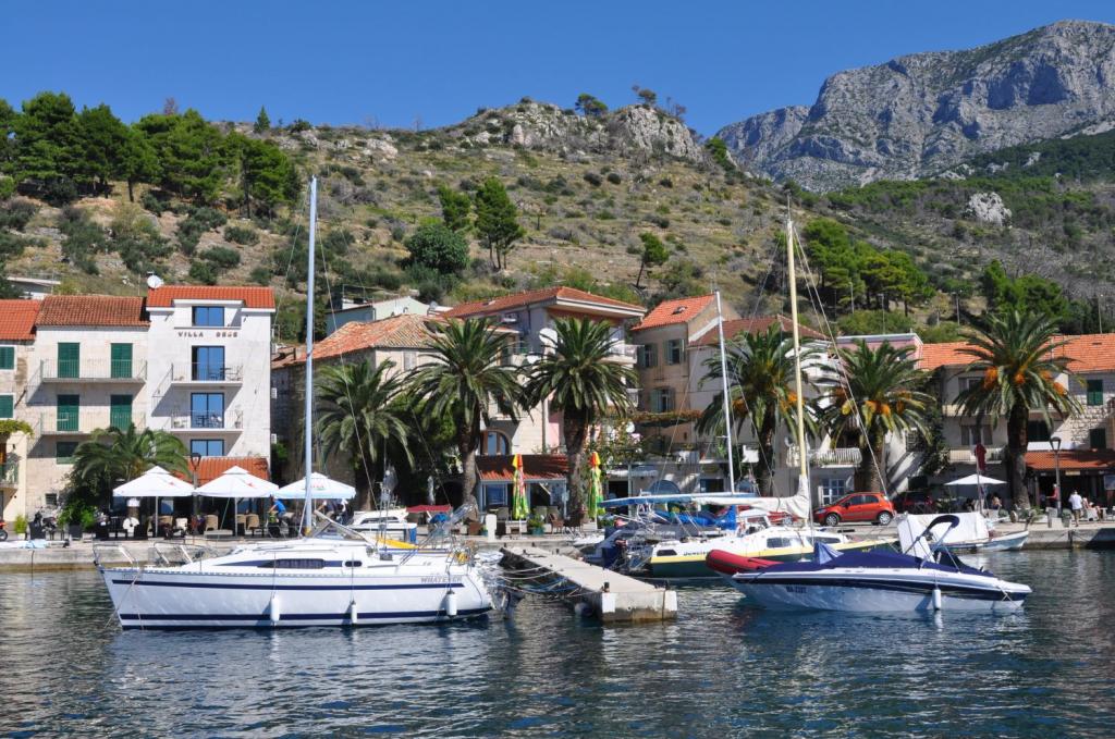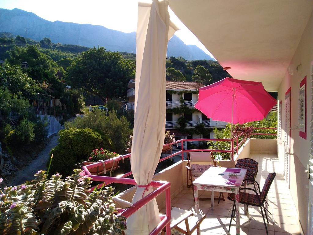 Appartement confortable et récemment rénové, comprenant 3 chambres, 2 salles de bains, une cuisine et un grand séjour avec vue sur la mer (100 m² au total), un balcon, le Wi-Fi, la télévision par satellite, la climatisation et un parking. Situé au 2e étage d'une maison familiale, l'appartement offre une vue imprenable sur la mer et les îles de Hvar et Brač d'un côté, et sur le massif du Biokovo de l'autre.