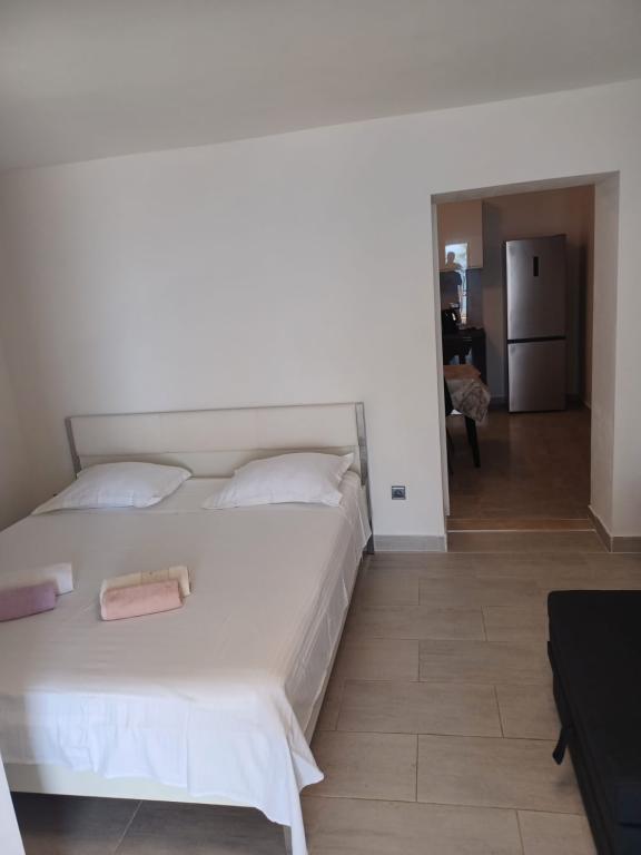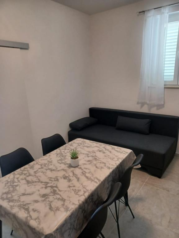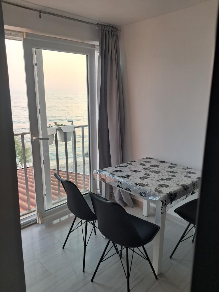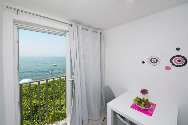 Petit studio parfait pour 2 personnes à très bon prix. La vue sur la mer depuis la cuisine et la terrasse magnifique. Les tamaris sur la plage donnent de l'ombre ! Vous n'avez pas besoin de parapluie. Chaises longues pour les invités. Près du magasin Tommy où vous pouvez acheter qc pour manger. Bar et restaurant/konoba pas loin. Propriétaires fantastiques - très serviables et sympathiques !!!