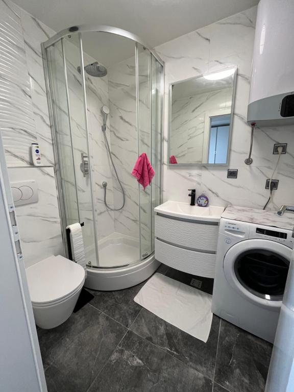 L'appartement est magnifique. Des transats gratuits sont à votre disposition. Félicitations aux propriétaires Anto et Irena, qui sont si gentils et communicatifs. Ils nous ont ravis. La mer est à quelques pas de l'appartement. Un supermarché est situé à quelques minutes à pied de l'appartement. Notre séjour a été parfait et nous reviendrons certainement.