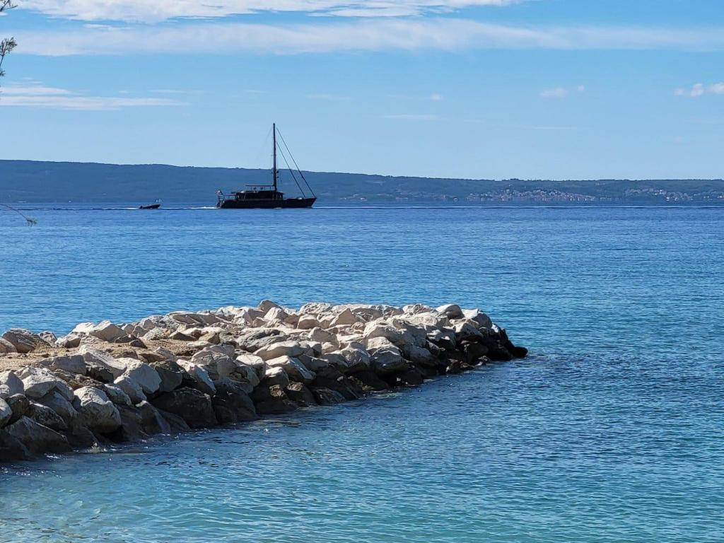 super, L'hospitalité est il était très important, il est beaucoup plus beau que les photos. La vue est Fantastiquement belle. Situation sur la plage de galets, beau jardin et transats gratuits. Un parking pour votre voiture est disponible directement dans la cour. connexion de bus de Super à Split et Omis. Nous ne serions pas hésiter à y retourner et louer l'appartement. Merci pour un tel séjour merveilleux et relaxant.