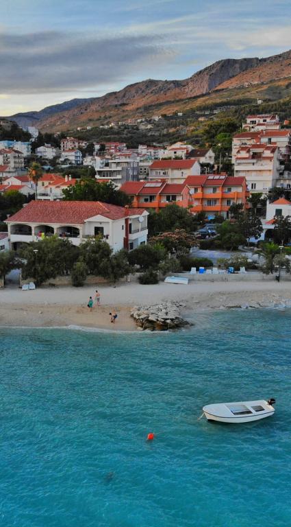 Appartements entièrement neufs situés à 10m de la mer dans un environnement calme. A proximité se trouve un marché, un café-restaurant, une boulangerie, une pharmacie. Les appartements sont situés à 12 km de Split, à 13 km d'Omis. Les appartements disposent de grandes terrasses.