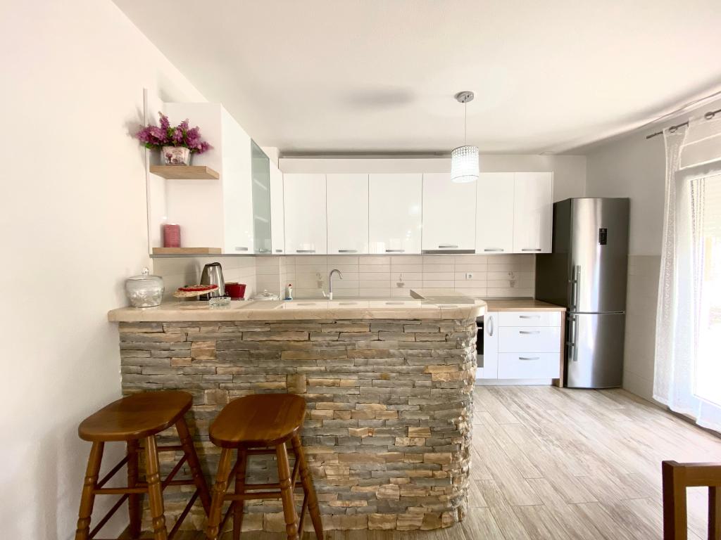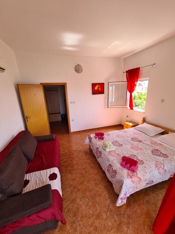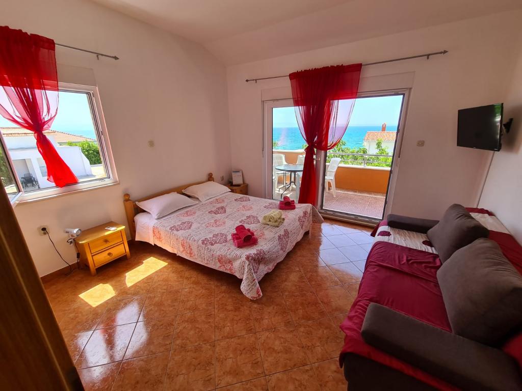 Taxe de sejour est inclus dans le prix.Le prix de l'appartement comprend également une chaise longue qui est livrée avec un parasol pour une meilleure protection contre le soleil lors des chaudes après-midi et matins d'été. Le parking est également inclus dans le prix et est situé juste à côté de l'appartement. En cas de réservation de 7 jours et plus, nous servons à nos clients du poisson pêché par notre propre bateau et des pêches cueillies dans notre propre champ. Nous vendons également du vin chaud et du brandy maison à petit prix. Nous proposons également de l'huile d'olive maison, et nous la vendons également en plus grande quantité.