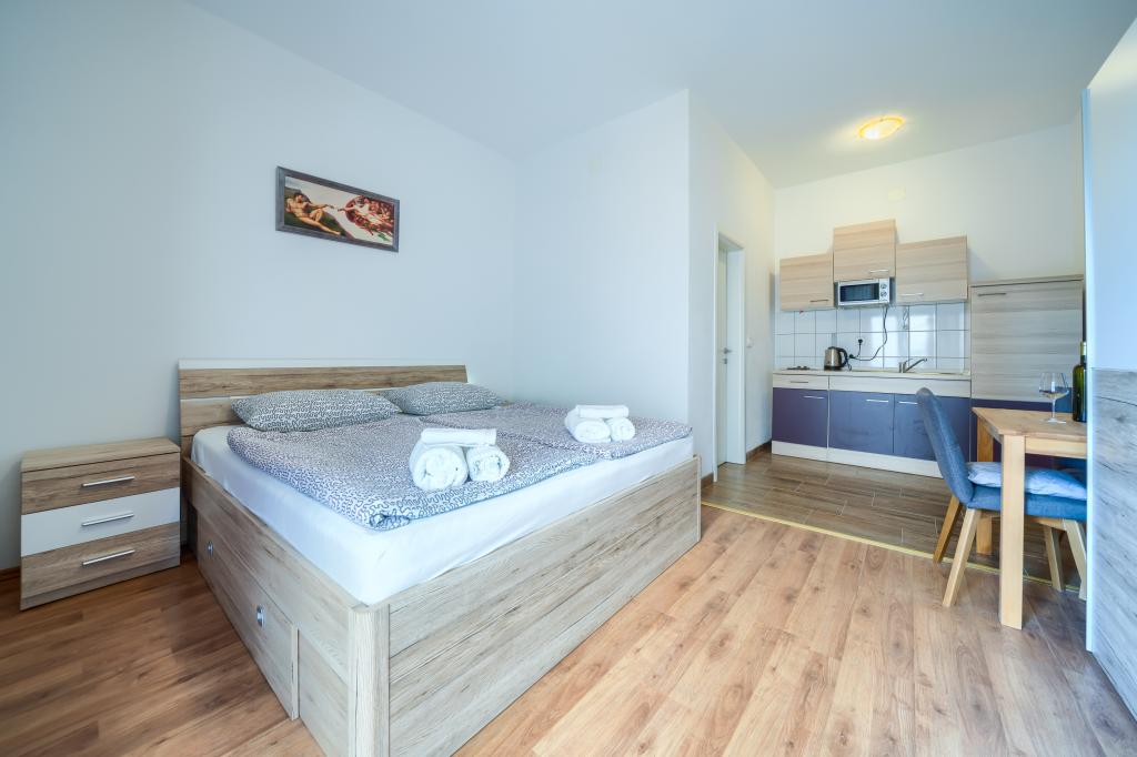 Appartements neufs et équipés de façon moderne dans un quartier calme, situé à 200m de la mer. La propriété est située à 5 minutes à pied de 3 plages de galets, de cafés, de boutiques, de restaurants, de pharmacies, de médecins et de pharmacies. Toutes les unités sont équipées de climatisation, TV, coin repas, salle de bain, terrasse. La nouvelle piscine de 8x4m est réservée exclusivement aux hôtes de l'appartement.