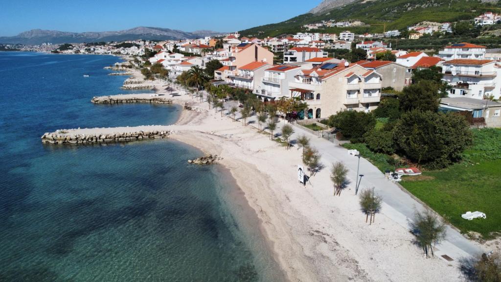 Pendant quatre ans, je vais à l'appartement de la LEP. J'ai tout ce dont vous avez besoin pour un bon repos obtenu. Chaud, la mer propre à la plage calme avec transats gratuits à seulement quelques pas de la maison. Le café de la plage avec de la bière et du café. Dans 100m marché avec une bonne alimentation et de l'arrêt de bus où vous pouvez prendre le bus à destination de Split, à 8 km. Ville charmante, pleine de curiosités, attractions pour tout le monde. Des hôtes sympathiques, offrant des conseils en toute situation. Chambres avec une vue magnifique sur la mer et le jardin. Je recommande à tous, un bel hôtel avec une bonne ambiance.