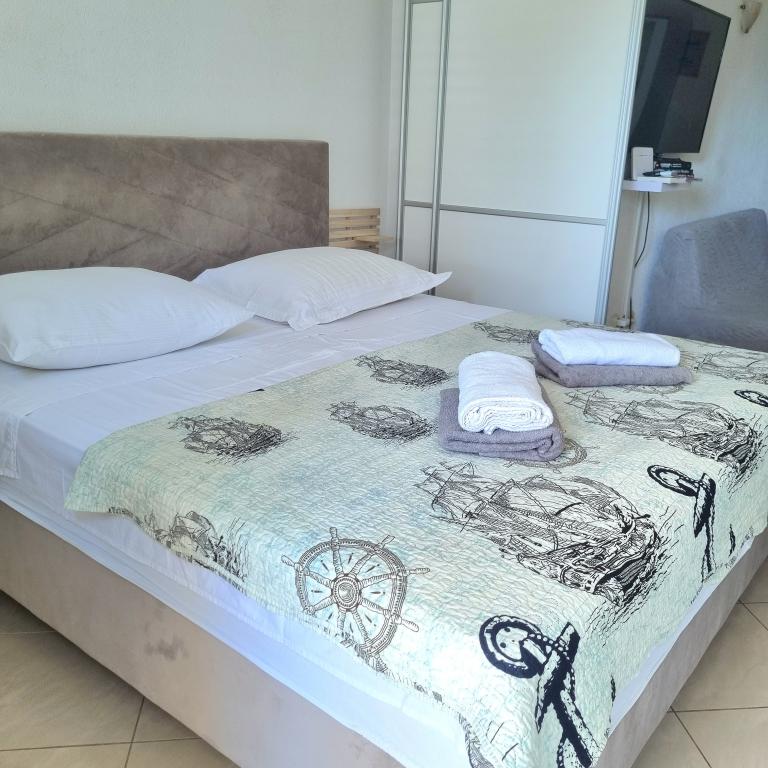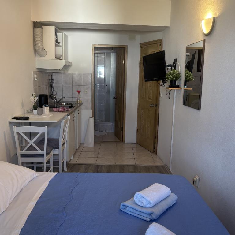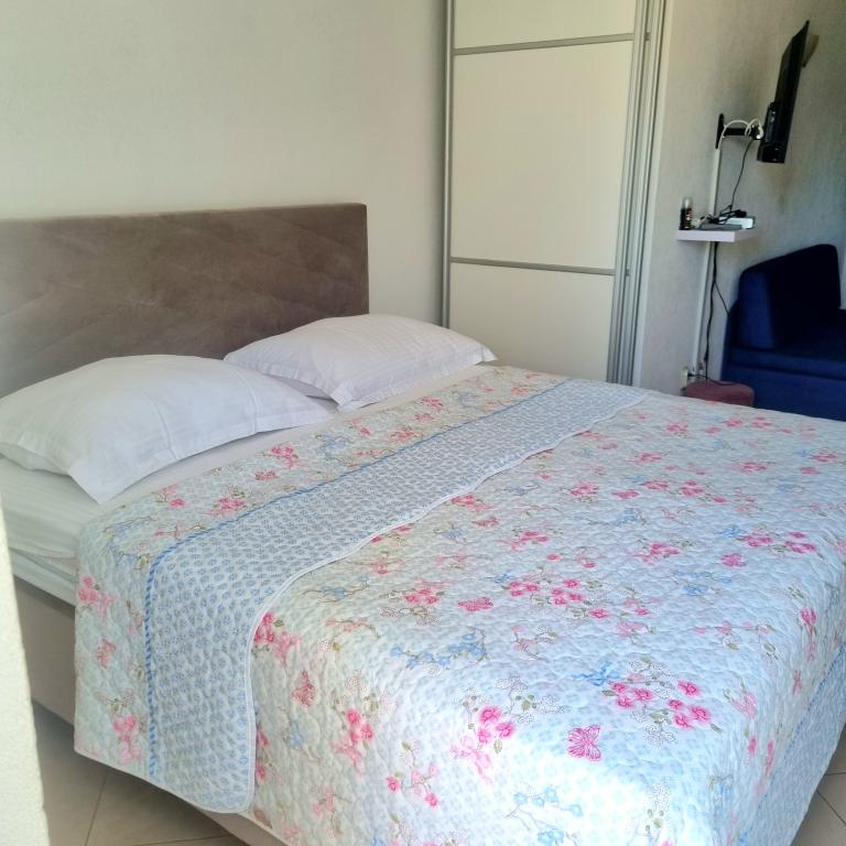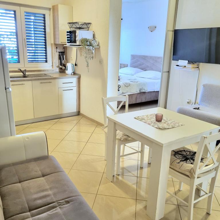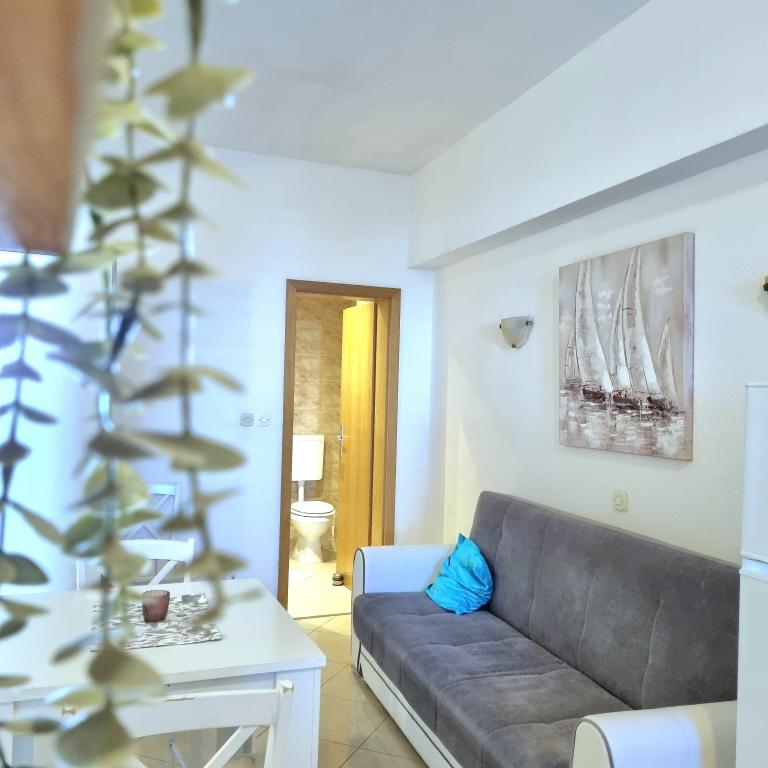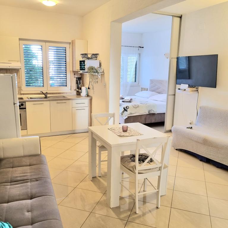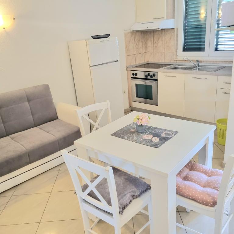Le logement était très agréable, propre, tout le nécessaire pour cuisiner, la possibilité de changer les serviettes à tout moment. Possibilité de grillades. La plage dispose de ses propres chaises longues et d'un parasol. La plage était juste derrière le jardin, la mer propre et calme. Propriétaires des gens très serviables et sympathiques.