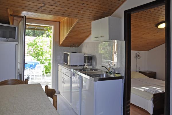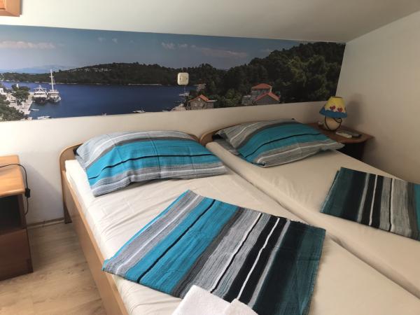 Appartements modernes dans le centre du parc national, à 50m de la mer et 300m du lac. La maison d'hôtes est située dans un quartier calme Pomena 150m de l'hôtel. Nous offrons à nos hôtes éco home-made-alimentaire, très savoureux et sain, qui est préparé à partir de notre alimentation. Petit-déjeuner avec un restaurant ont une tradition de plus de 40 ans. De 1.10.do 1.6. Nous offrons des arrangements spécialisés (pêche, la cueillette des raisins, olives, travaillant dans le domaine des produits faits maison, etc). Vous pourrez prendre votre petit déjeuner ou demi-pension à d'excellents prix.