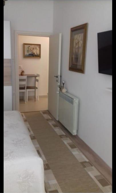 Studio pour 2 personnes situé dans le centre de Poreč, à 10 minutes à pied de la vieille ville. Il faut compter 10 minutes à pied ou 2 minutes en voiture pour rejoindre les premières plages. A 50 mètres du studio il y a un supermarché, un distributeur automatique de billets, une boulangerie, un restaurant, des cafés. Il est équipé de climatisation, TV écran plat, satellite. La cuisine est équipée pour cuisiner, wi-fi gratuit. La taxe de séjour est incluse dans le prix et aucun paiement supplémentaire n'est requis autre que le prix de l'hébergement. Situé au premier étage.