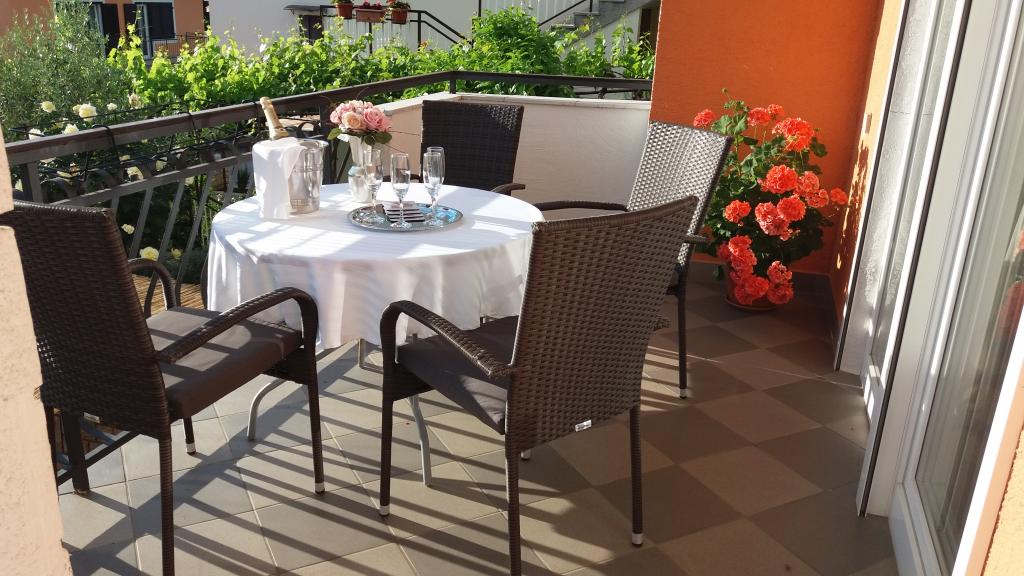 Nous sommes situés dans un quartier calme à proximité immédiate de la ville. L'appartement dispose de 3 chambres avec lits doubles, cuisine, salle à manger, couloir et 3 salles de bains avec douche, WC et bidet. L'appartement a tout ce dont vous avez besoin pour faire de vos vacances de vraies vacances. Tout le linge de lit est disponible ainsi que des ustensiles complets pour manger et boire, réfrigérateur, cafetière, cuisinière électrique, four micro-ondes, TV avec réception satellite et vous avez également un accès gratuit à Internet avec une utilisation illimitée. Devant l'appartement il y a une grande terrasse avec une table et des chaises et des transats. Derrière l'appartement se trouve un véritable paradis, à l'ombre vous avez une grande table et vous pouvez utiliser le grill, tandis que les enfants peuvent jouer librement sur l'herbe verte. Il y a un parking privé gratuit devant la maison. A proximité, à 50 m de l'appartement, vous avez un grand supermarché, des restaurants, des cliniques, et vous avez à 400 m du centre, ainsi que de la première plage. Bien sûr, vous n'avez pas besoin de voiture, car vous pouvez vous y rendre à pied en 7-8 minutes.