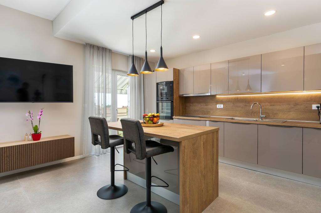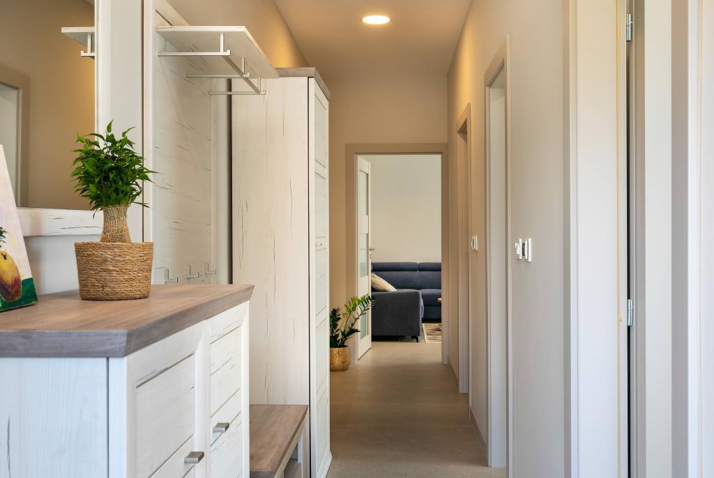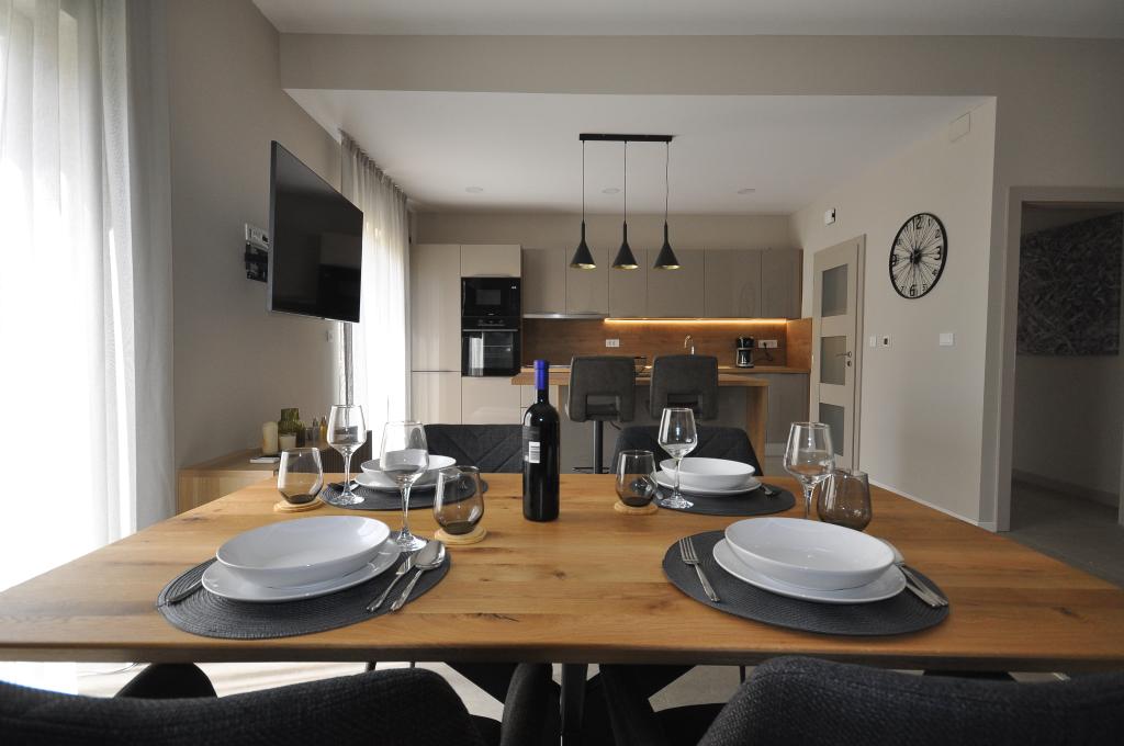Poreč, Appartement Nona Ana, appartement récemment rénové avec une chambre, salle de bains, salon spacieux avec salle à manger et cuisine et balcon. La cuisine est équipée d'un lave-vaisselle, d'un four micro-ondes, d'un four, d'une machine à café filtre et d'une machine à café expresso, d'une bouilloire et d'un grille-pain. L'appartement dispose également d'une TV-SAT, d'une connexion Wi-Fi, d'un sèche-cheveux, d'un fer à repasser et d'un lave-linge dans la salle de bain. L'appartement est chauffé et refroidi via un climatiseur inverseur situé dans le salon et dans la chambre. L'appartement est situé au 1er étage. Place de parking prévue dans la cour. La distance de la mer est à seulement 900m-1000m, la distance du marché à 500m, le restaurant à 600m, la distance du centre à 2500m.