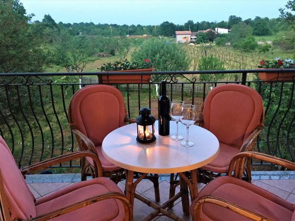 Les appartements Marko sont situés dans un village calme, entouré de verdure et d'un vignoble. Ils sont idéaux pour des vacances tranquilles en famille, des vacances à deux, mais aussi pour tous ceux qui veulent s'évader du mode de vie trépidant et se détendre complètement. En décorant l'appartement de manière authentique, nous apportons une touche de l'Adriatique à vos vacances. Vous pouvez compléter vos vacances par une promenade sur les routes forestières voisines ou explorer à vélo le célèbre sentier Parenzanu, qui se trouve à seulement 0,5 km de la propriété. Les appartements sont situés au premier étage d'une maison familiale avec une entrée privée. Tous les appartements sont nouvellement décorés, disposent d'une télévision LED, de la climatisation et d'une connexion Wi-Fi. Un parking gratuit est disponible devant le bâtiment. Nous proposons les appartements suivants : Appartement pour 2 personnes, Appartement pour 4 personnes, Studio pour 2 personnes.