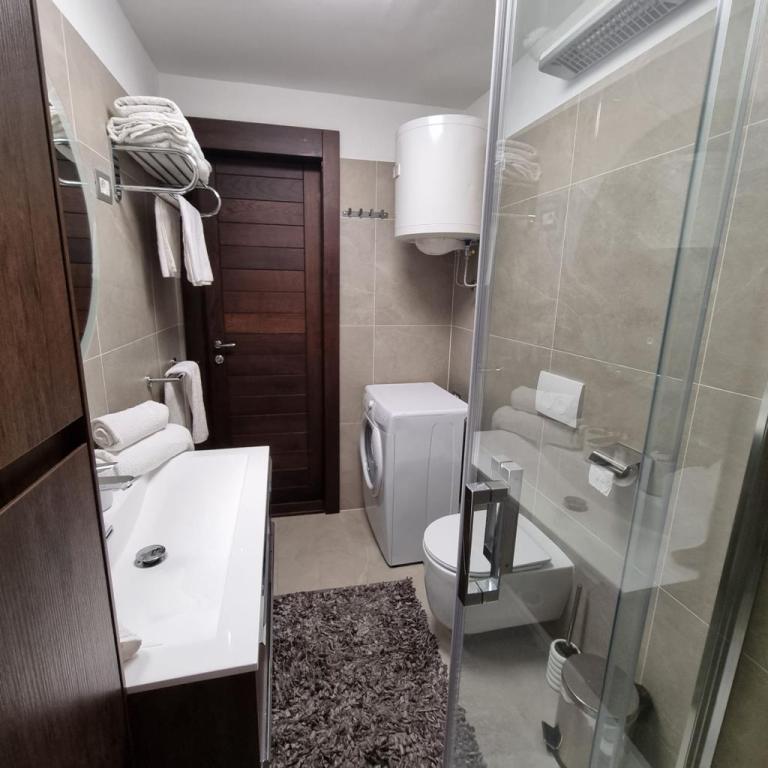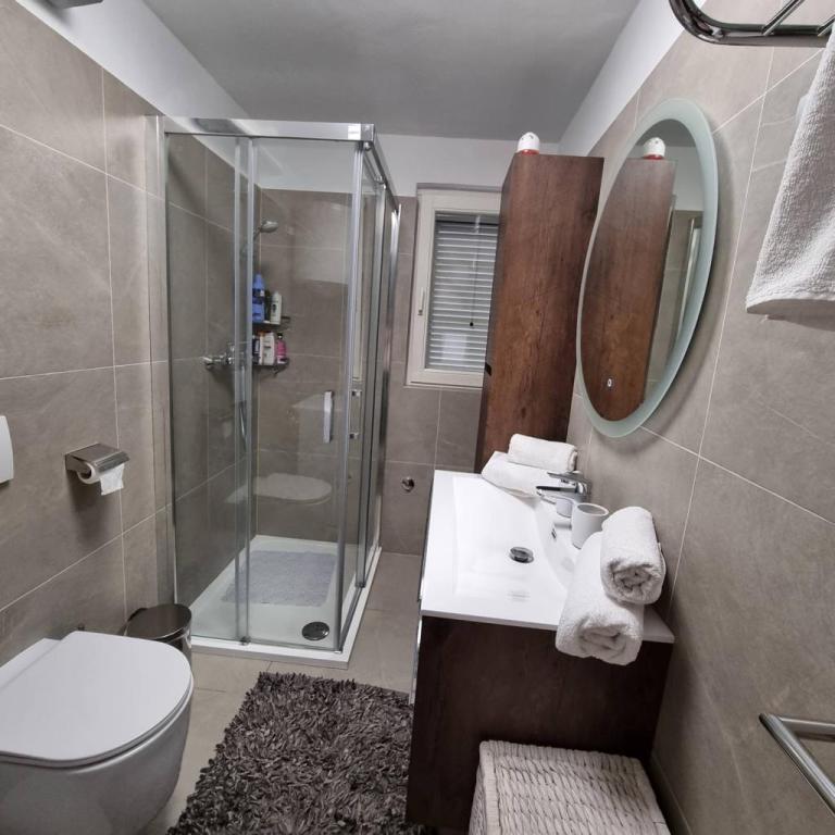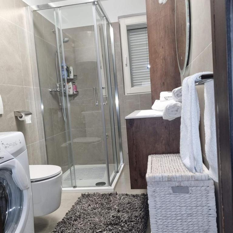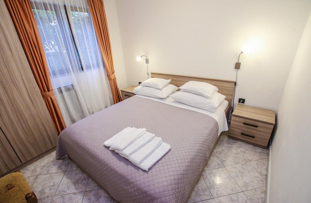 Appartements dans une maison privée près de la mer et du centre. L'appartement est situé au rez-de-chaussée et dispose de 2 chambres, d'un salon avec un lit d'appoint, d'une cuisine, d'une salle de bain et d'une terrasse. Ce logement a une position idéale car vous pourrez aller partout à pied, la plage en 2 minutes et le centre ville en trois minutes. Le magasin est à seulement 50 m de l'appartement. Prenez simplement votre brosse à dents et laissez-nous le reste !