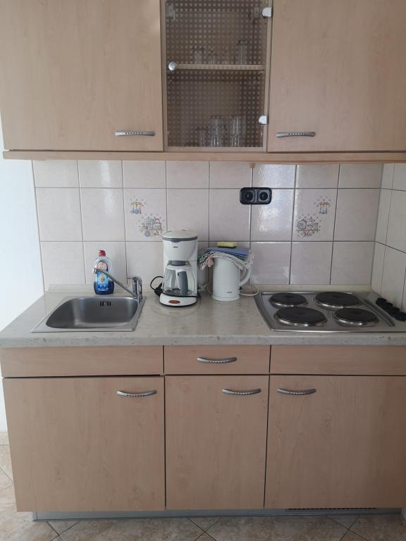 Appartements dans une maison privée près de la mer et du centre. Les appartements sont situés au rez-de-chaussée. Les appartements sont entièrement équipés de façon moderne. L'établissement est situé à cinq minutes à pied de la plage. L'appartement dispose d'une grande terrasse avec barbecue. Le parking pour les voitures est dans une cour clôturée.