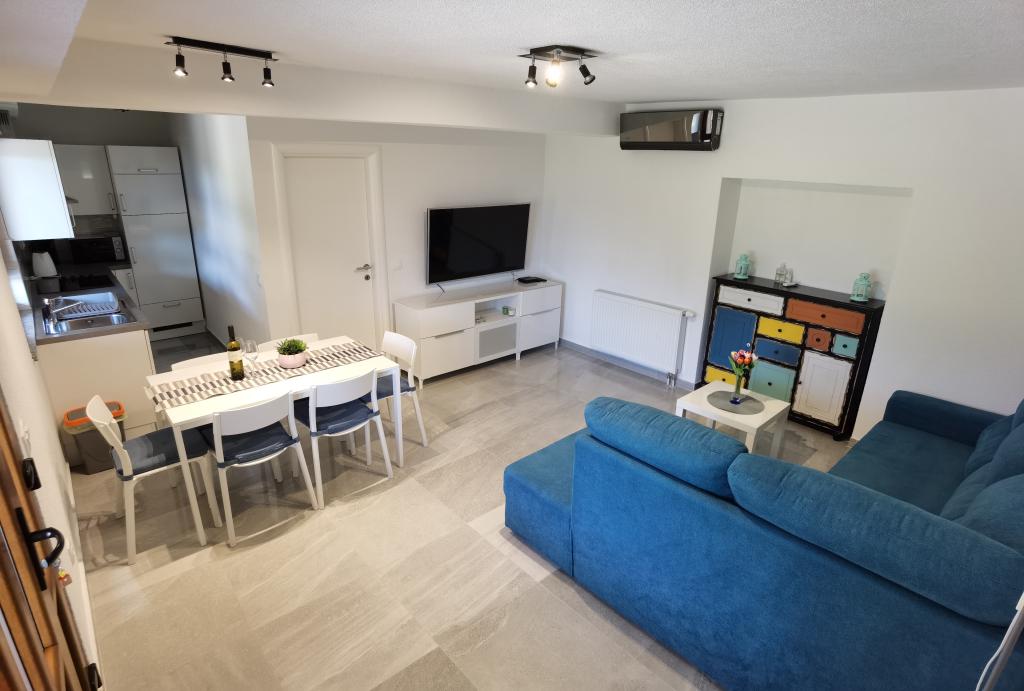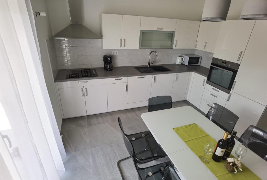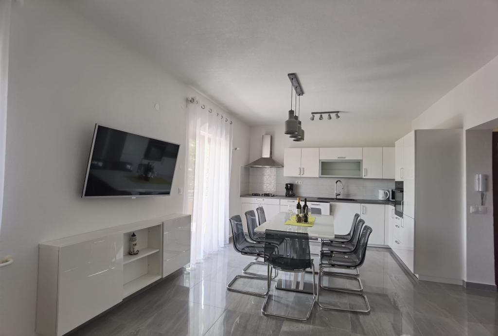 L'appartement 6+2 est très agréable, spacieux, meublé de façon moderne, avec une grande terrasse et une vue sur la mer, et la climatisation et la télévision dans chaque pièce. L'équipement de l'appartement est également adapté aux petits enfants, car ils disposent également d'un lit portable et d'une chaise haute. Il y avait plein de boissons fraîches de bienvenue dans le réfrigérateur à l'arrivée. L'appartement était très propre et bien rangé à l'arrivée. Les propriétaires étaient très sympathiques et serviables. Si nous avions besoin d'autre chose, ils nous apportaient également un supplément. Il est proche de la mer et de la plage - via un raccourci - mais une partie du chemin est impropre à la conduite avec une poussette, ce qui était pour nous le seul inconvénient. Recommandé pour les familles nombreuses ou les groupes d'amis.