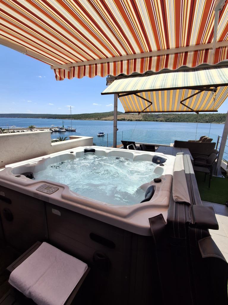 Les appartements sont situés en première ligne face à la mer, au cœur de Posedarje, avec vue sur le port et la côte. Une petite plage de baignade se trouve à 50 m et la grande plage principale à 150 m. Les appartements sont situés dans une maison familiale avec une entrée indépendante. Chaque appartement dispose d'un balcon ou d'une terrasse et est entièrement meublé (vaisselle, linge de lit et serviettes). Ils sont tous climatisés et équipés d'une télévision connectée LCD. Les appartements sont prévus pour 2 personnes. Nous proposons un appartement standard meublé et un appartement de luxe avec une terrasse de 50 m² équipée d'un jacuzzi privatif sur le toit, de transats, de serviettes et d'auvents pour protéger les motos du soleil. Une partie de la terrasse est couverte pour vous protéger de la pluie et du soleil, vous permettant ainsi d'en profiter à tout moment de la journée. Attention : les appartements sont réservés à 2 adultes et ne peuvent accueillir de personnes supplémentaires. Les enfants de moins de 8 ans ne sont pas admis. Nous n'acceptons qu'un seul petit chien non agressif, pesant jusqu'à 3 kg, et celui-ci doit dormir sur le sol.