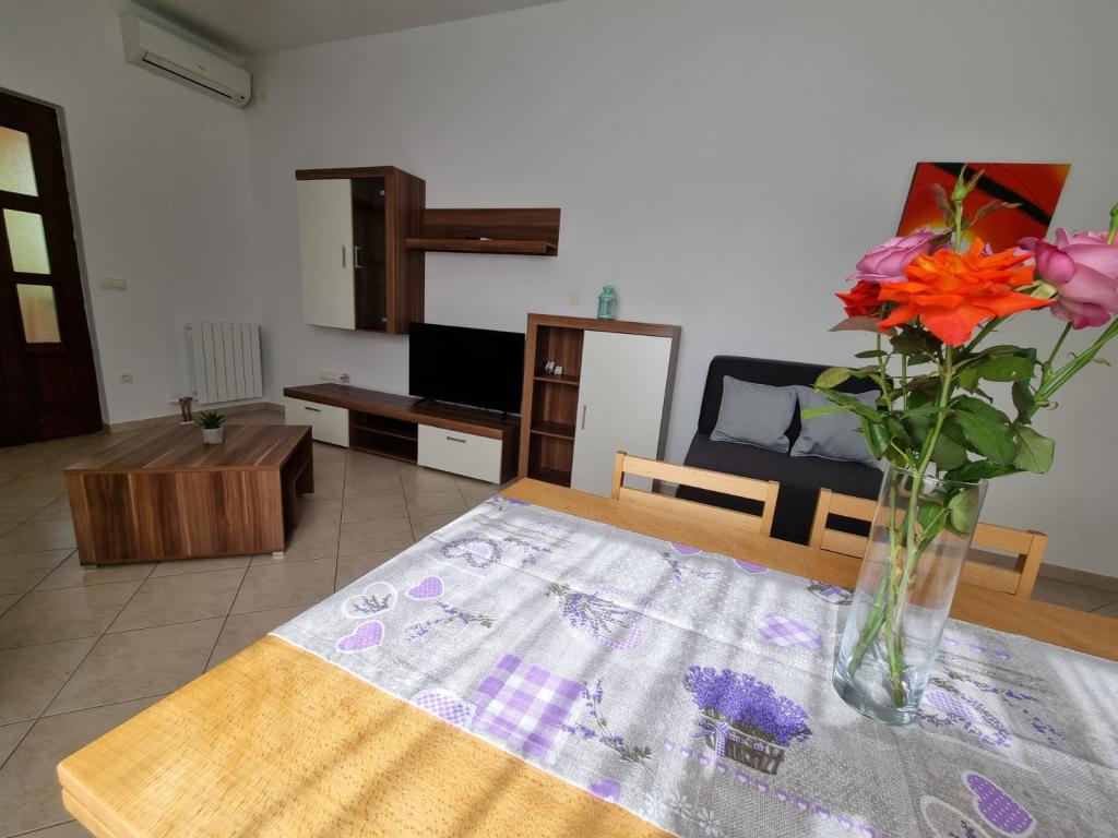 Nous avons séjourné dans un appartement pour 4 personnes de la famille Klanac. Des gens extrêmement merveilleux ; accommodant, attentionné, tolérant. Leur accueil en tant qu'hôtes mérite tous les éloges. C'est un honneur de rencontrer de telles personnes. L'appartement est magnifique, spacieux. Une propreté irréprochable, une propreté et un bel équipement laissent une impression particulière. Jardin décoré comme par magie ; figues, olives, vignes et fleurs marquent la beauté de cet appartement. Nous recommandons des vacances à ceux qui aiment le confort de la maison, la beauté naturelle et la noblesse des hôtes.