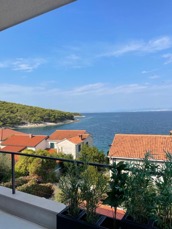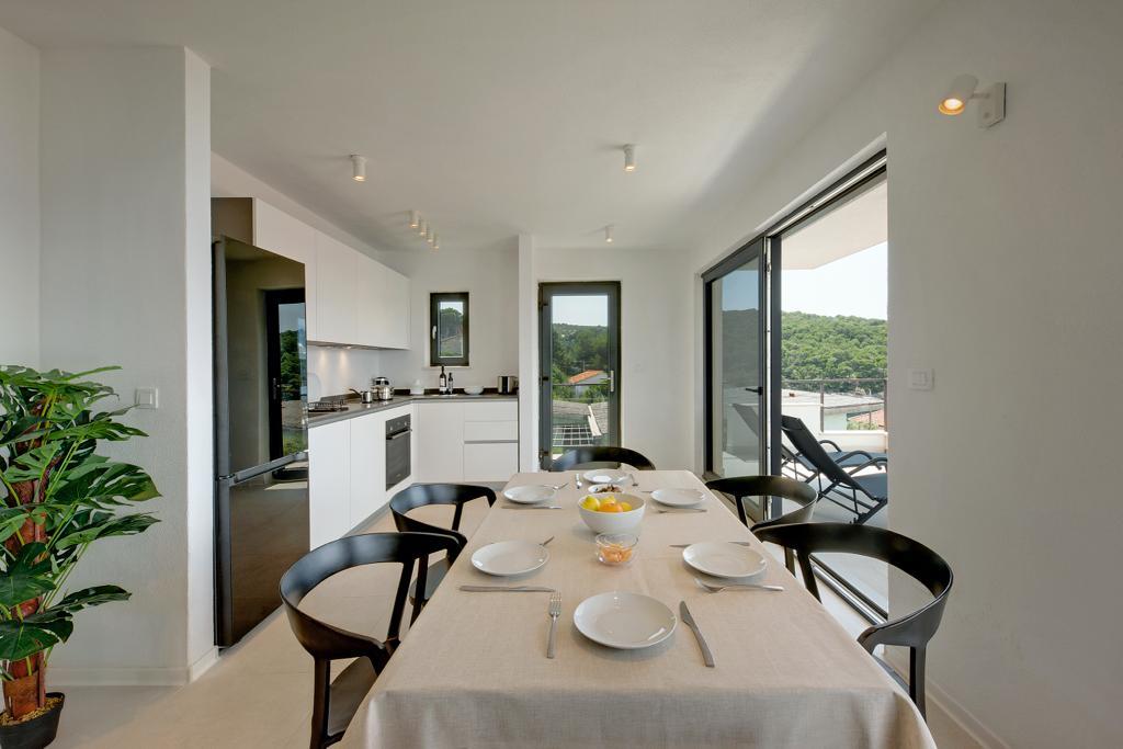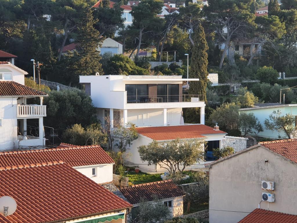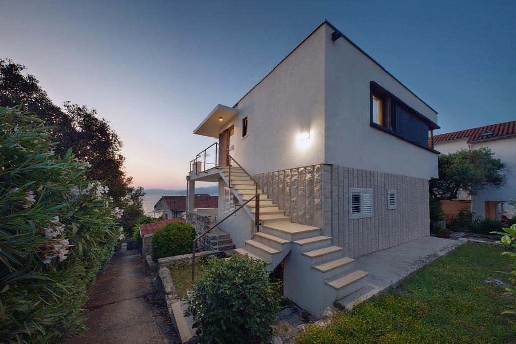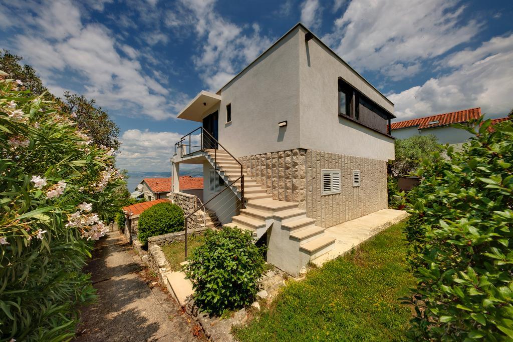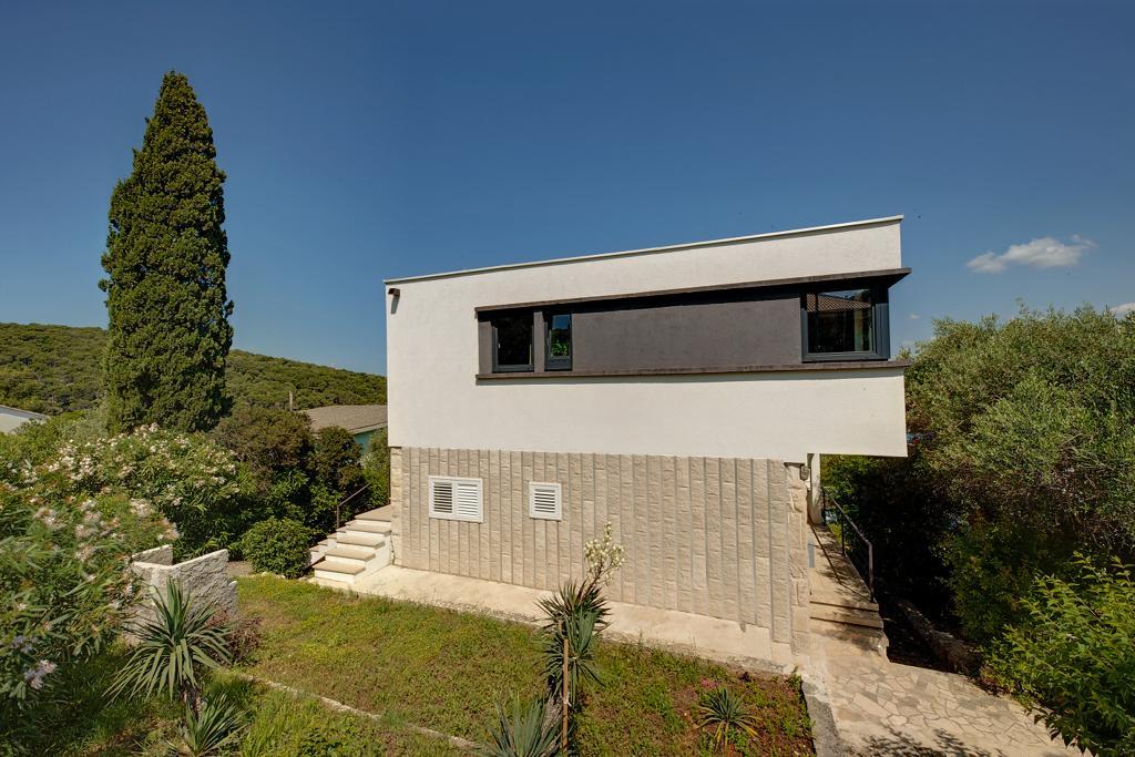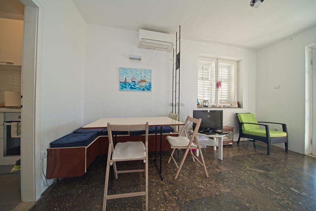 La maison dans laquelle se trouvent les appartements est située dans un quartier calme et attrayant de la ville. Entouré d'un jardin arboré et fleuri, une spacieuse terrasse couverte offre une belle vue sur la mer. Il y a une place de parking devant la maison et un barbecue dans la cour. La mer n'est qu'à 80 m et la plage de sable la plus proche. La baie est calme, mais vous êtes à 2-3 minutes à pied du centre-ville.