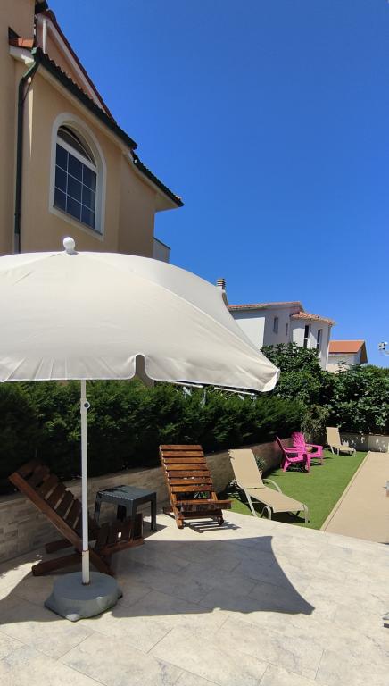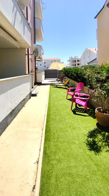 Les "Appartements Benedetti" sont situés presque juste à côté de la plage, dans un endroit parfait où vous pourriez presque sauter directement dans la mer ! Ils sont situés dans un petit endroit calme, parfait pour la détente, à 2 rangées de notre plage principale. C'est l'occasion d'échapper à l'agitation et de commencer des vacances parfaites. Les appartements sont agrémentés de jardins paysagers, créant un environnement idéal pour la détente. Imaginez-vous sur des chaises longues avec un cocktail, entouré de paix et de fleurs. La plage de galets "Mali Dubrovnik" est à seulement 20 m (2 minutes) et la plage de sable est à seulement 5 minutes à pied. Les restaurants sont à 50 m et un magasin à 30 m de l'appartement. Pour des achats plus importants, vous pouvez rejoindre le centre de Povljana à pied ou en voiture (600 m). Un café et un court de tennis se trouvent à seulement 20 mètres, juste en face de la rue. Les appartements sont situés au rez-de-chaussée, parfaits pour les familles avec enfants et les couples qui aiment les vacances au calme. Les utilisateurs de l'appartement disposent d'un parking et d'Internet gratuits, de la possibilité d'utiliser un barbecue et d'espaces extérieurs partagés pour se détendre. Garez votre voiture et profitez-en !