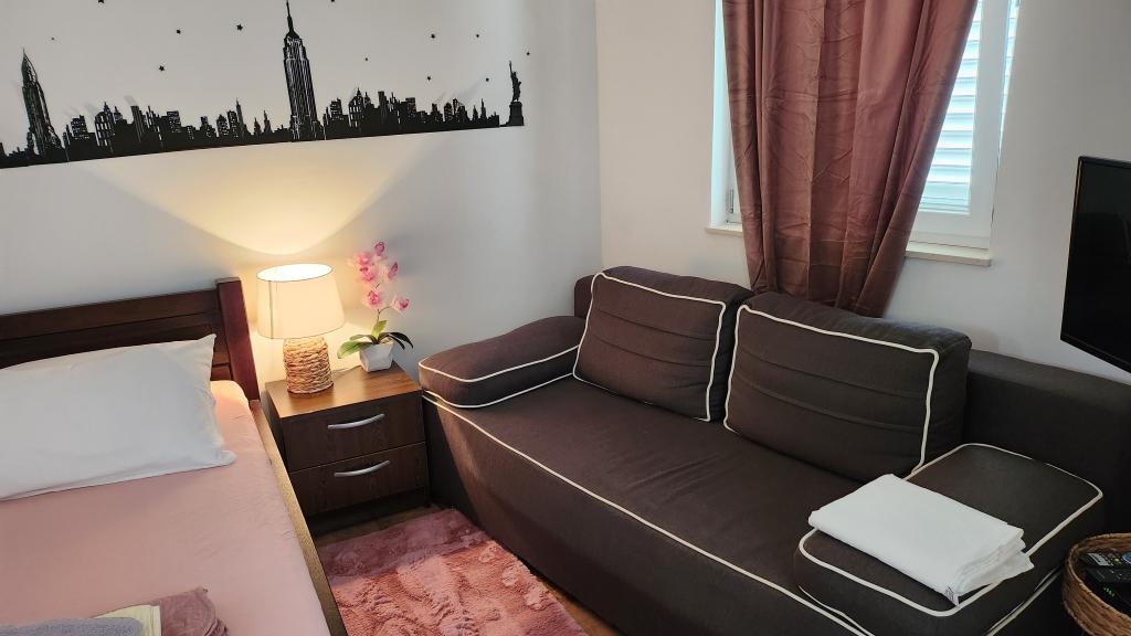 L'appartement est tel qu'il est sur les photos. Première rangée de la mer, belle vue. Parking réservé devant l'immeuble. La promenade en face de l'appartement mène à des restaurants et des cafés. L'appartement est bien équipé. La plage en face de l'appartement a des galets, mais il y a de belles plages à quelques minutes en voiture. Ivana est très gentille et arrangeante pour toutes les questions à sa disposition. Nous aimerions certainement revenir.