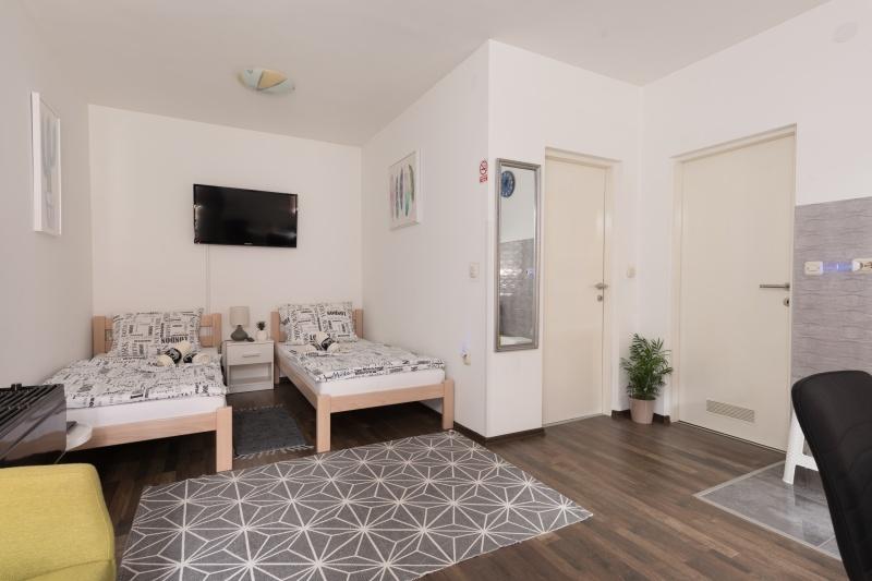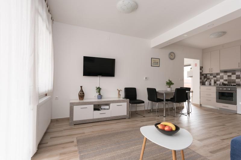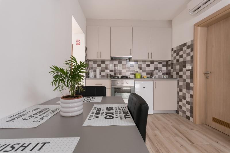 Dans un endroit calme, à seulement 150/250 m du centre-ville, il y a 4 unités résidentielles de 4 lits chacune. Les appartements sont climatisés avec parking, terrasses couvertes et cuisines équipées (réfrigérateur, cuisinière, micro-ondes, grill extérieur...) - idéal pour les célibataires, les couples, ou les familles et les groupes, pour une courte ou longue durée.