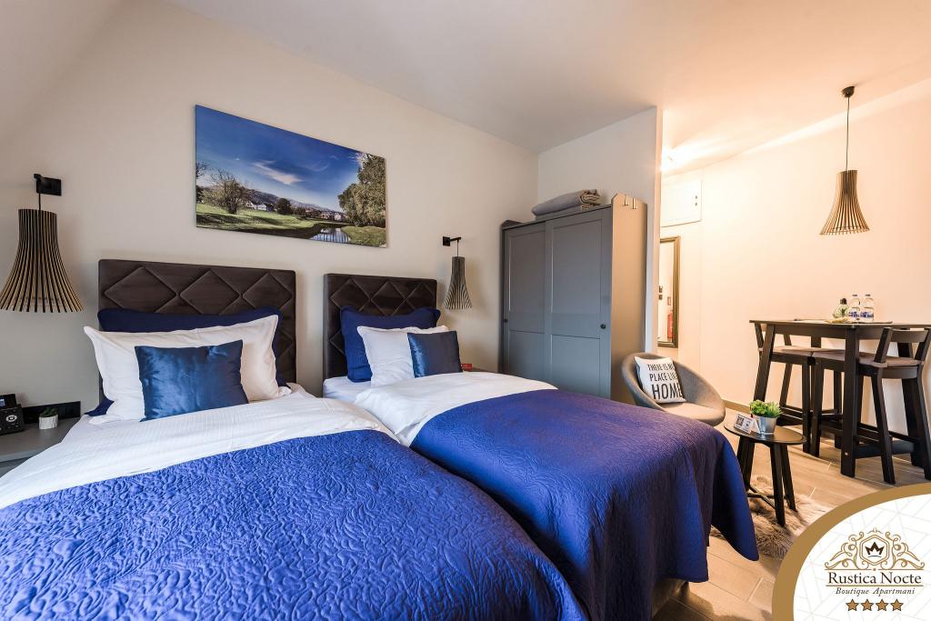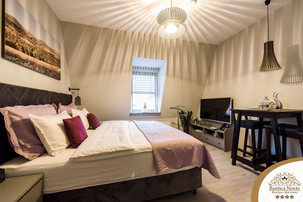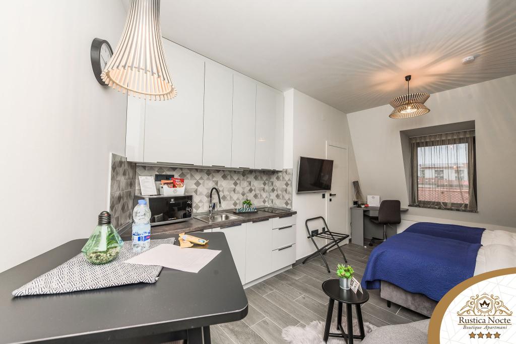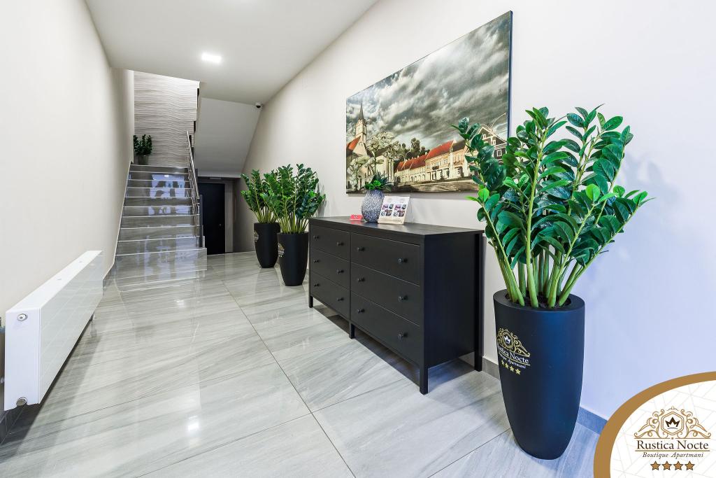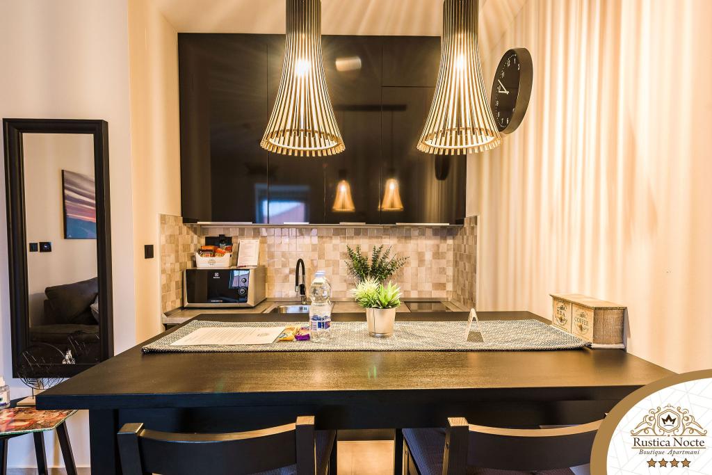 En plein cœur de la Slavonie, au début de la zone piétonne de Požega, les appartements Rustica Nocte Boutique sont l'endroit idéal pour des vacances de rêve. Afin de rendre vos vacances aussi agréables que possible, nos appartements modernes vous offrent des équipements de qualité, et nous tenons particulièrement à souligner le système de gestion intelligent pour l'ensemble de l'appartement, le Wi-Fi haut débit gratuit et l'Internet filaire et sans fil, Lits boxspring king size, coffres-forts numériques, téléviseurs ultra HD Ambilight Récepteurs TV 50 pouces avec Netflix, programmes satellite et locaux et éclairage Ambilight LED aux fenêtres, salles de bains ventilées et chauffées et cuisines entièrement équipées dans chacun des appartements. Chaque appartement contient également un mini-bar avec des boissons non alcoolisées et alcoolisées et des collations. Les appartements disposent également d'un coin enfants avec des tables, des jouets, des livres à colorier et des tapis de jeu. Avec tout cela, vous pouvez planifier vos vacances sans soucis.