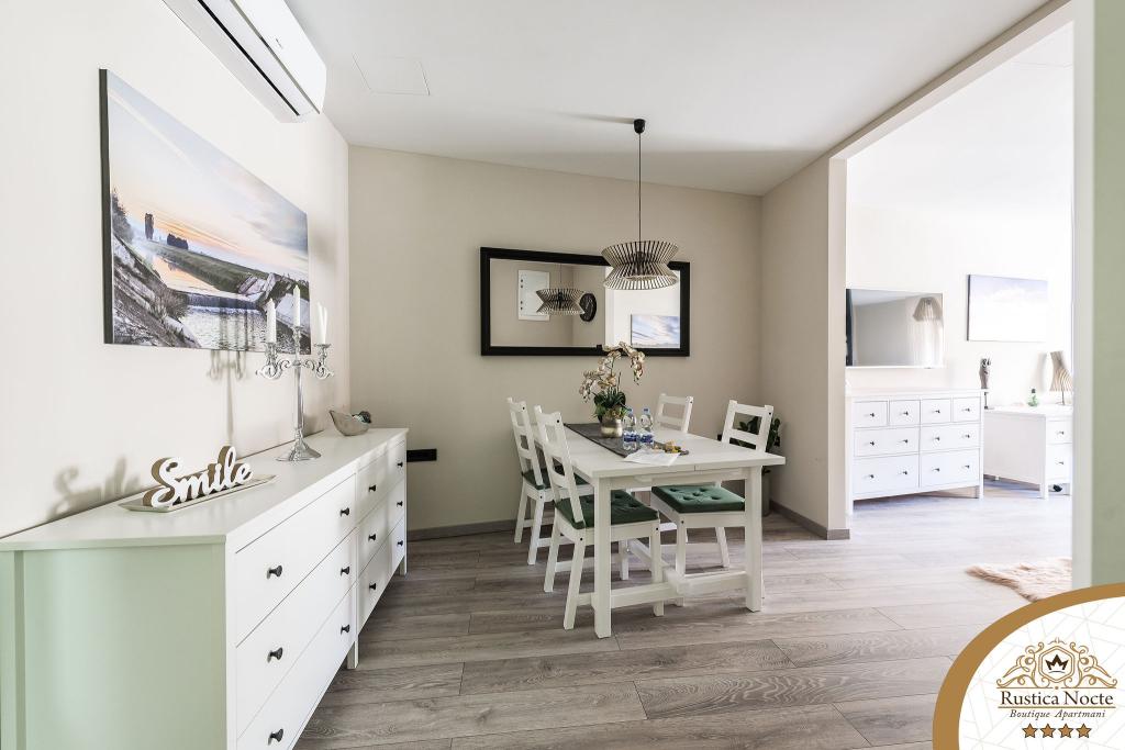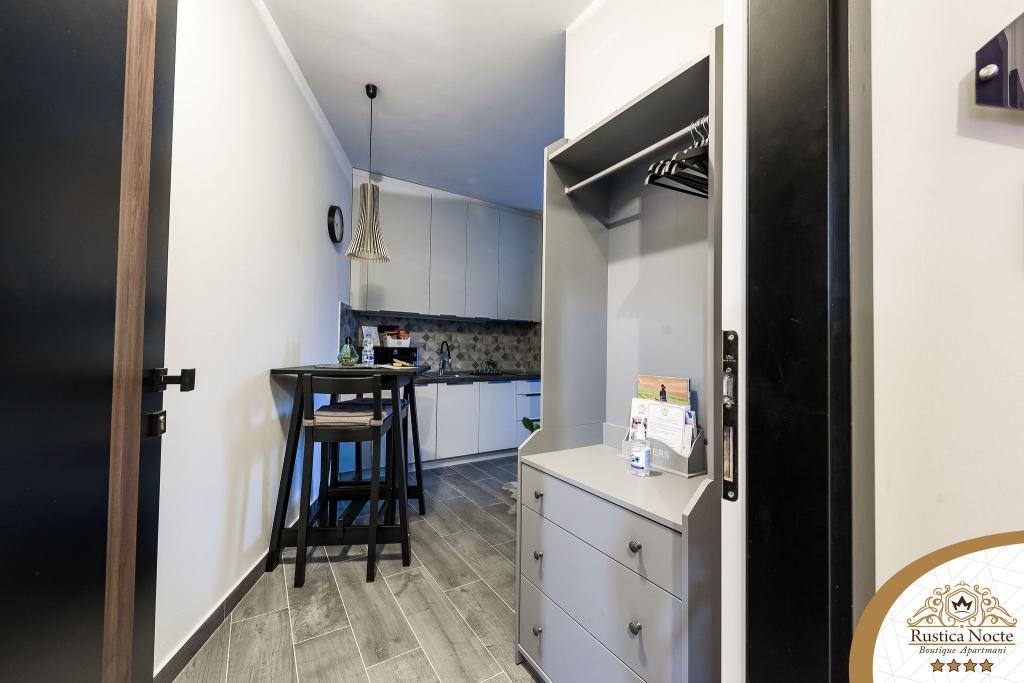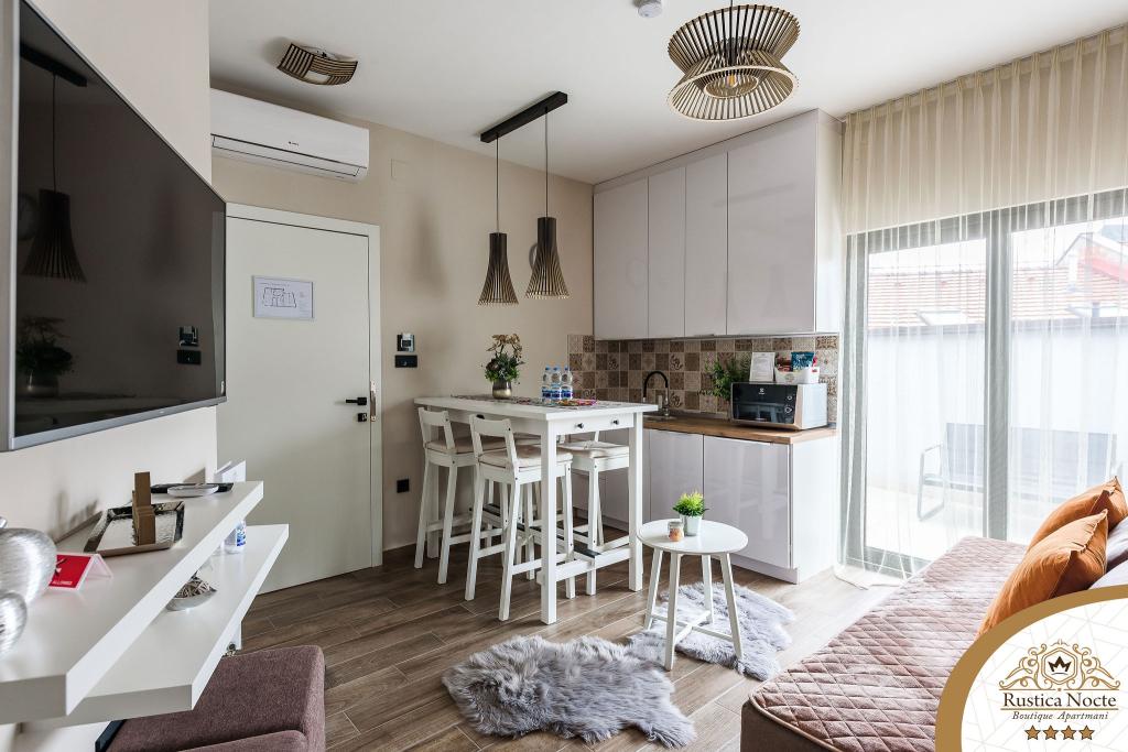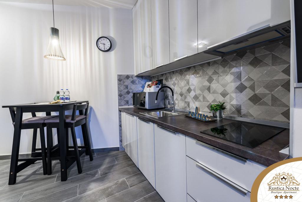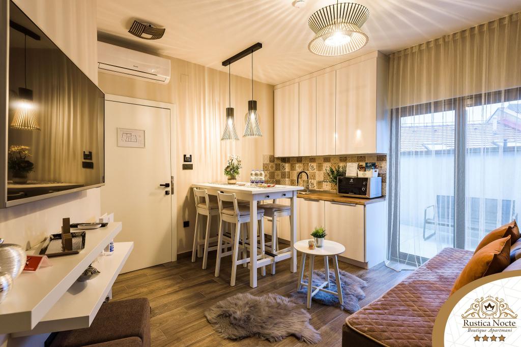 En plein cœur de la Slavonie, au début de la zone piétonne de Požega, les appartements Rustica Nocte Boutique sont l'endroit idéal pour des vacances de rêve. Afin de rendre vos vacances aussi agréables que possible, nos appartements modernes vous offrent des équipements de qualité, et nous tenons particulièrement à souligner le système de gestion intelligent pour l'ensemble de l'appartement, le Wi-Fi haut débit gratuit et l'Internet filaire et sans fil, Lits boxspring king size, coffres-forts numériques, téléviseurs ultra HD Ambilight Récepteurs TV 50 pouces avec Netflix, programmes satellite et locaux et éclairage Ambilight LED aux fenêtres, salles de bains ventilées et chauffées et cuisines entièrement équipées dans chacun des appartements. Chaque appartement contient également un mini-bar avec des boissons non alcoolisées et alcoolisées et des collations. Les appartements disposent également d'un coin enfants avec des tables, des jouets, des livres à colorier et des tapis de jeu. Avec tout cela, vous pouvez planifier vos vacances sans soucis.