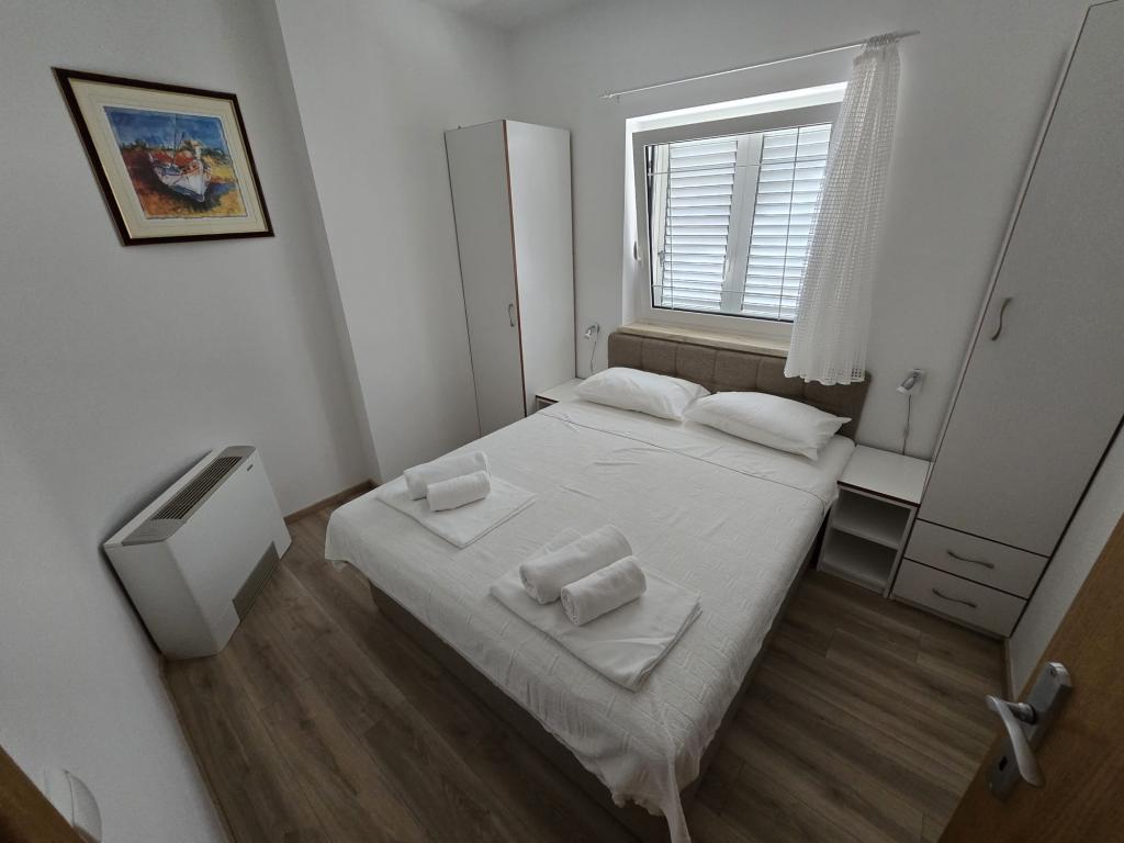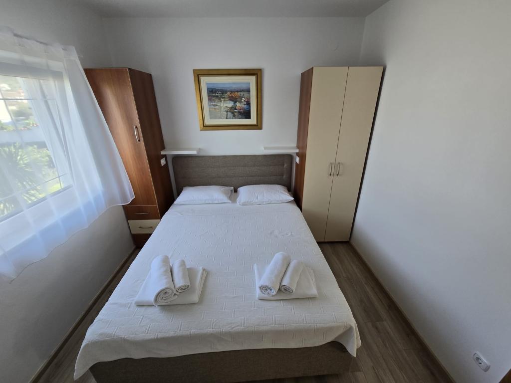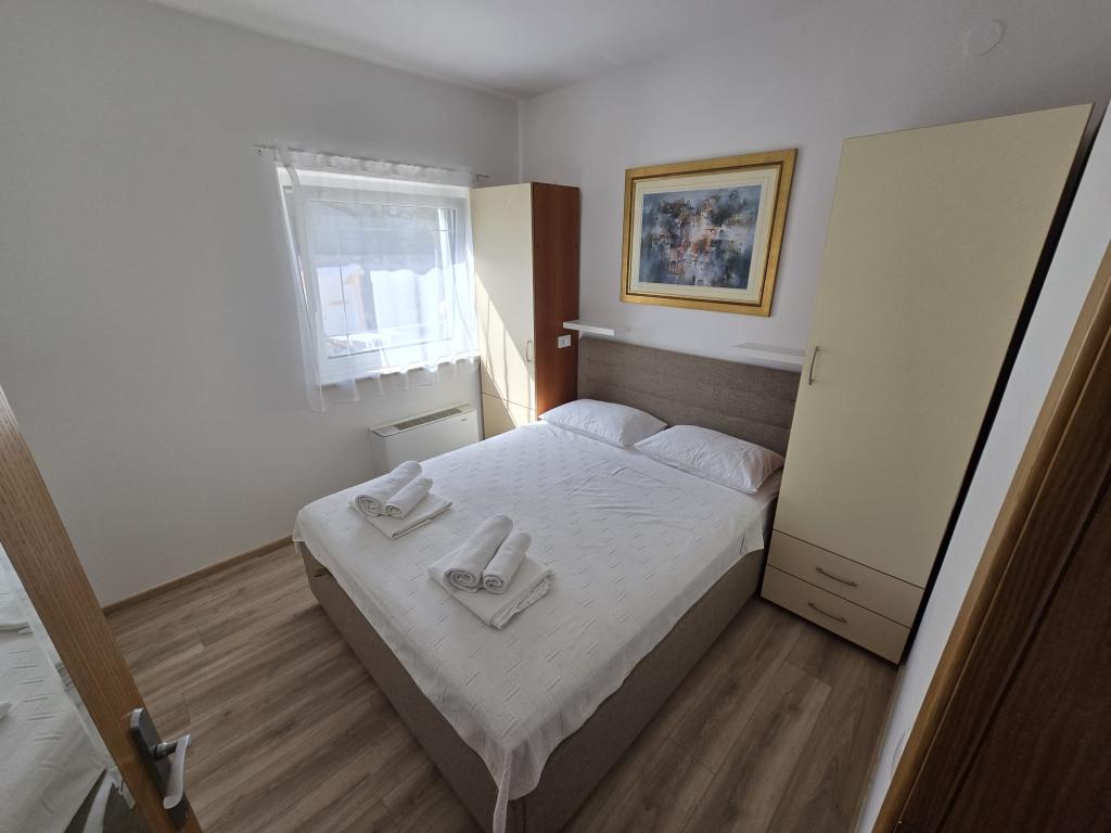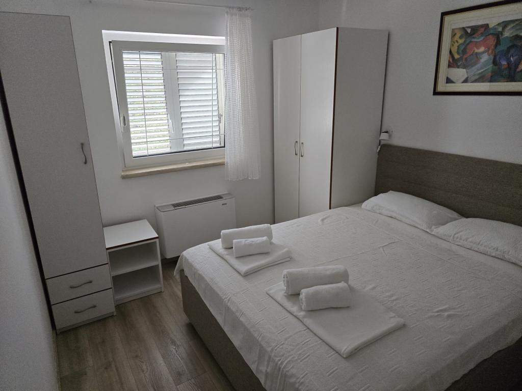 Les appartements ont été construits en 2004 et sont décorés de façon moderne. Nous vous proposons deux appartements de quatre lits. Chaque appartement est équipé de climatisation, téléphone, TV, récepteur satellite, radio avec CD, sèche-cheveux, machine à café (nespresso) et coffre-fort (coffre-fort) pour vos valeurs personnelles et objets de valeur. Chaque appartement a sa propre terrasse avec salon de jardin et parasol, et chaque appartement dispose d'une place de parking. Une connexion Wi-Fi gratuite est disponible pour les clients dans tout l'établissement. Dans la partie cour du bâtiment, il y a la possibilité d'utiliser un barbecue et un gazebo de jardin, une piscine, et les clients peuvent également utiliser des vélos. En raison du grand jardin bien entretenu, les appartements sont particulièrement adaptés aux familles avec enfants.