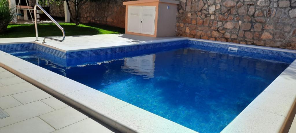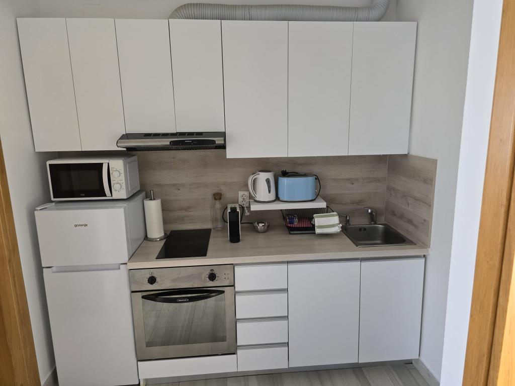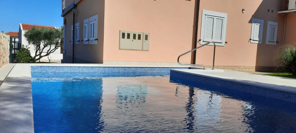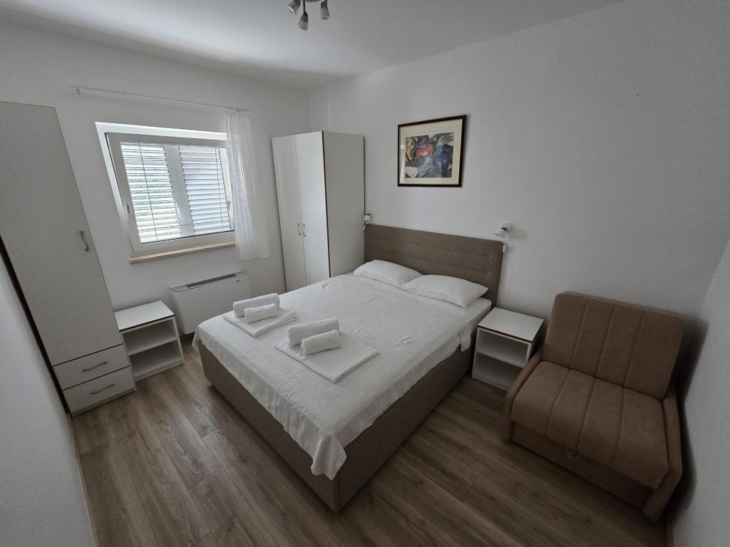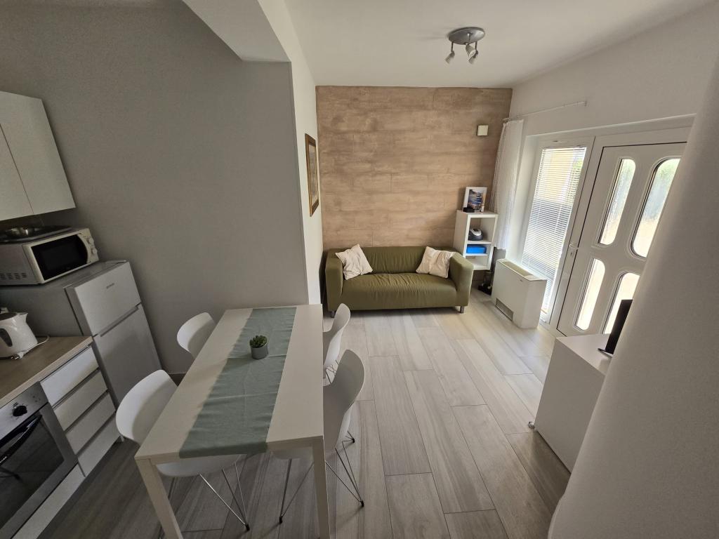Les appartements ont été construits en 2004 et sont décorés de façon moderne. Nous vous proposons deux appartements de quatre lits. Chaque appartement est équipé de climatisation, téléphone, TV, récepteur satellite, radio avec CD, sèche-cheveux, machine à café (nespresso) et coffre-fort (coffre-fort) pour vos valeurs personnelles et objets de valeur. Chaque appartement a sa propre terrasse avec salon de jardin et parasol, et chaque appartement dispose d'une place de parking. Une connexion Wi-Fi gratuite est disponible pour les clients dans tout l'établissement. Dans la partie cour du bâtiment, il y a la possibilité d'utiliser un barbecue et un gazebo de jardin, une piscine, et les clients peuvent également utiliser des vélos. En raison du grand jardin bien entretenu, les appartements sont particulièrement adaptés aux familles avec enfants.