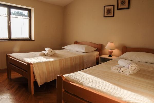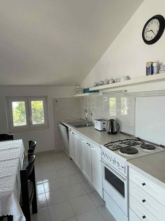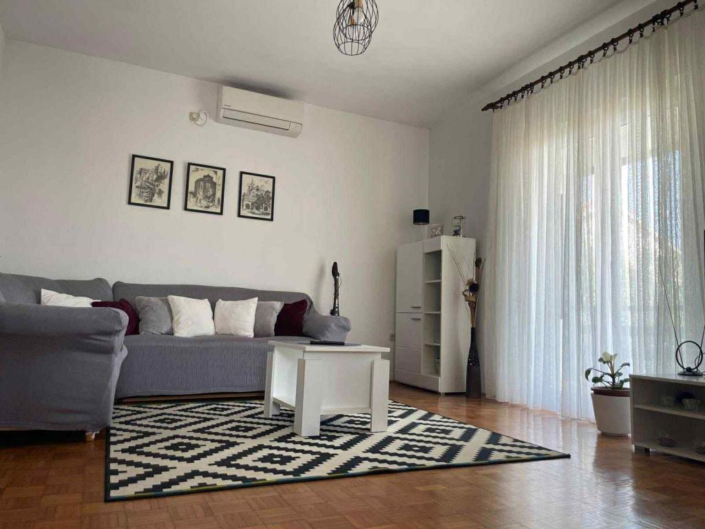 Appartements entièrement équipés dans un quartier calme de Preka, situé au deuxième rang de la mer. L'établissement est situé à 2 minutes à pied de la plage de sable et à 10 minutes à pied du centre-ville, et à proximité immédiate de l'établissement se trouvent un certain nombre de plages de galets. Le logement se compose d'un séjour avec une cuisine et un lit d'appoint pour deux personnes, une salle de bain, une chambre avec un lit double et une chambre avec deux lits, et une grande terrasse donnant sur la mer et le canal de Zadar.