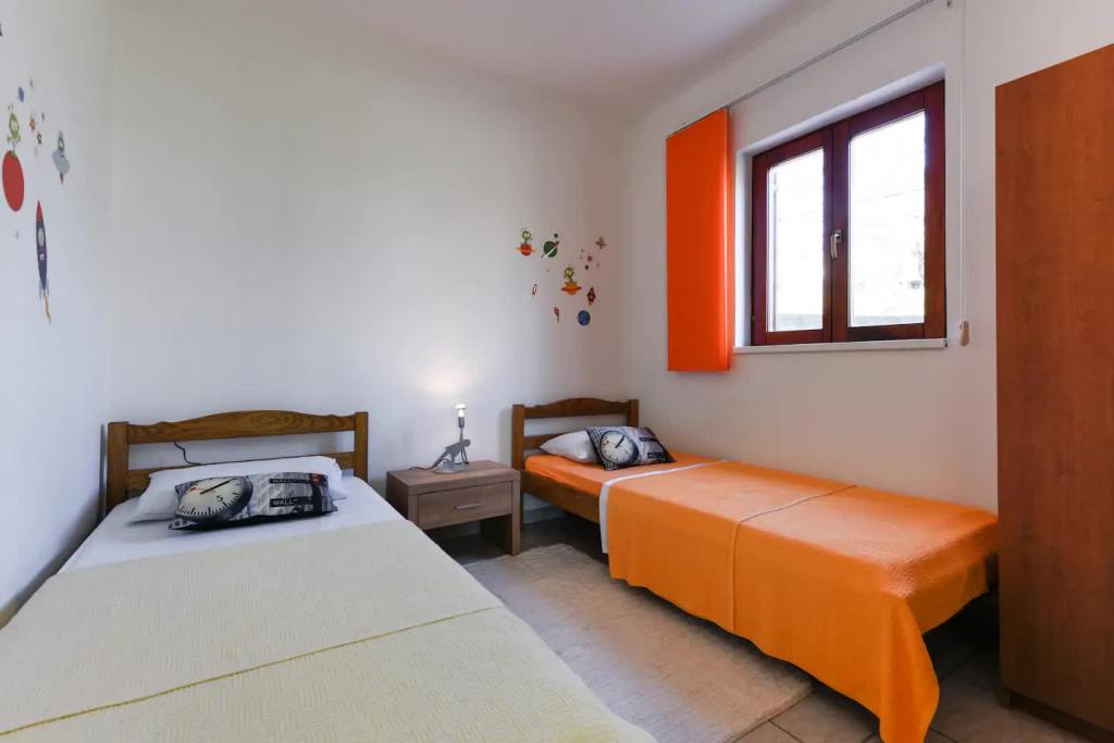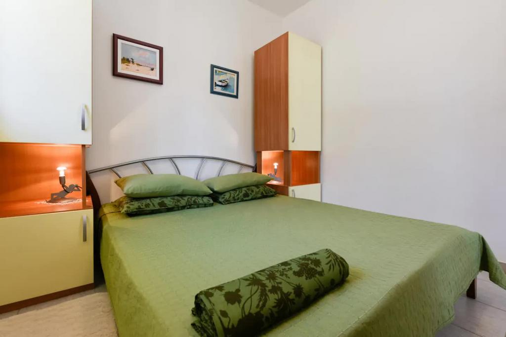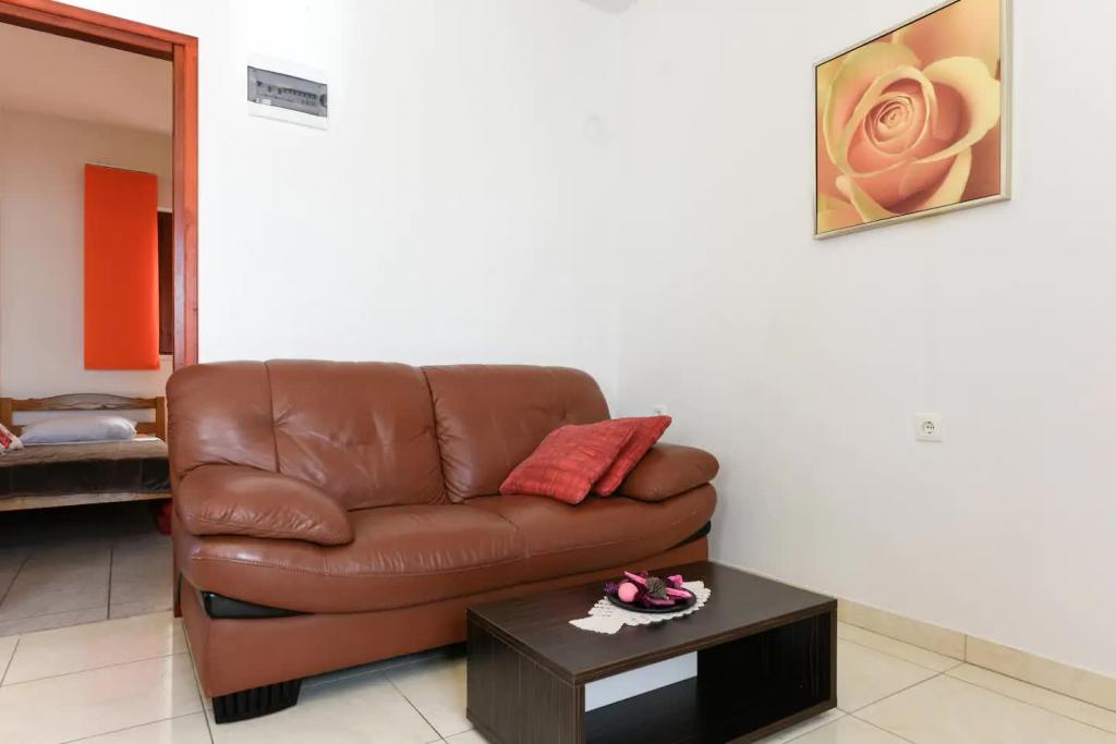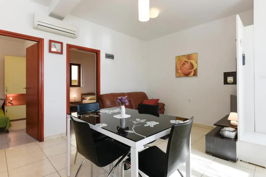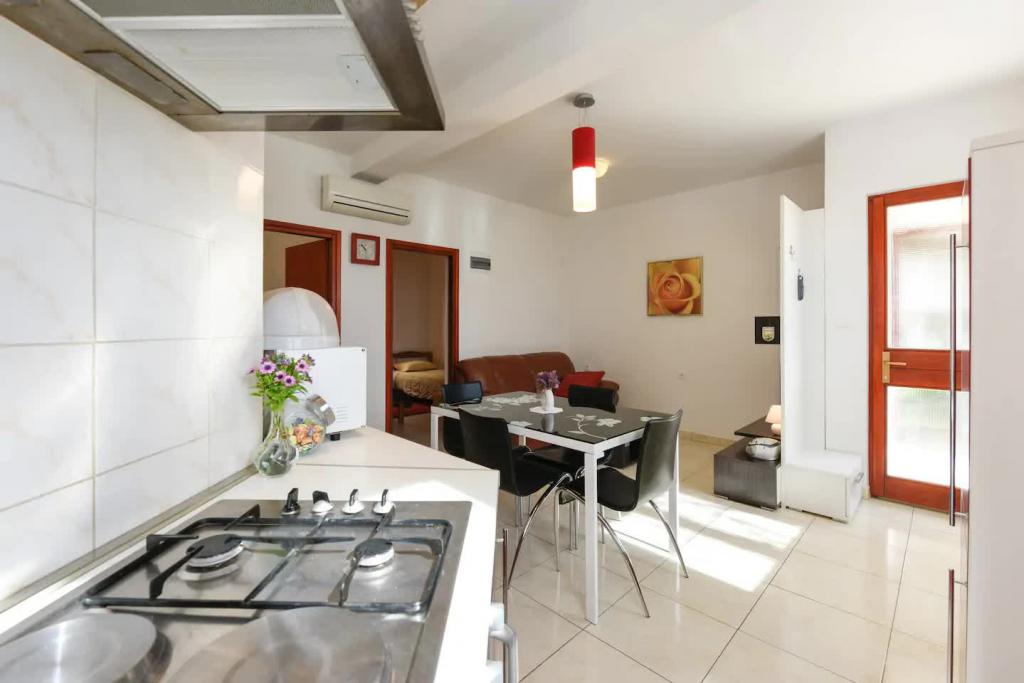 Appartements neufs et joliment meublés au rez-de-chaussée d'une maison familiale, à quelques pas de la magnifique plage de Jaz, qui porte le drapeau bleu et dispose d'un terrain de volley-ball. Il y a des restaurants et des cafés à proximité immédiate, et une aire de jeux pour enfants se trouve à seulement une vingtaine de mètres. Chaque appartement dispose de sa propre grande terrasse avec vue sur la mer. Les appartements disposent de deux chambres, d'une cuisine équipée, d'une salle de bain, d'un salon, d'un barbecue extérieur et d'un parking privé. Le cadeau de bienvenue est inclus dans le prix