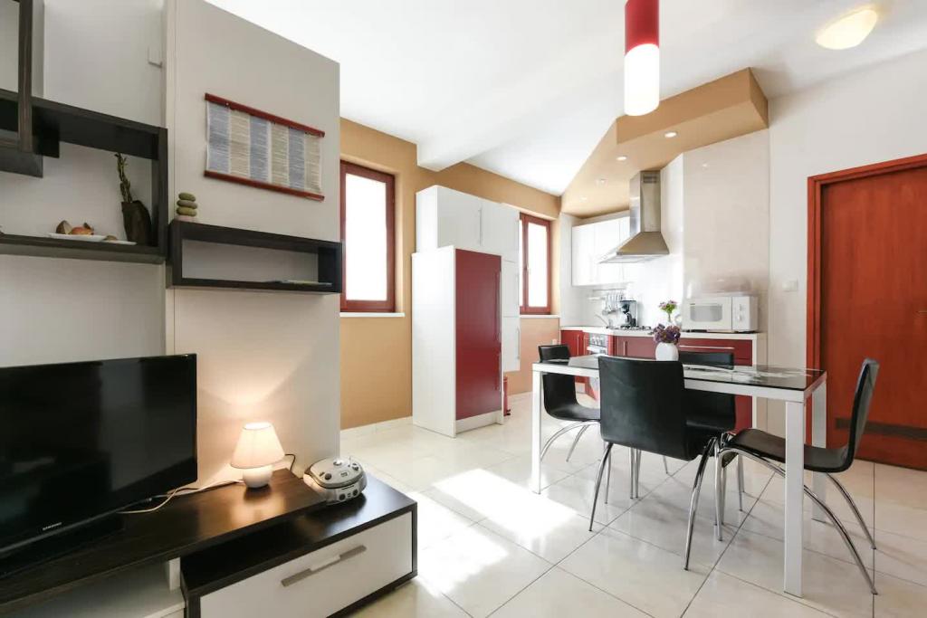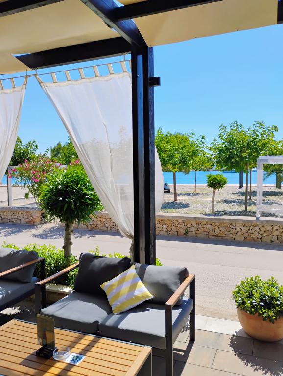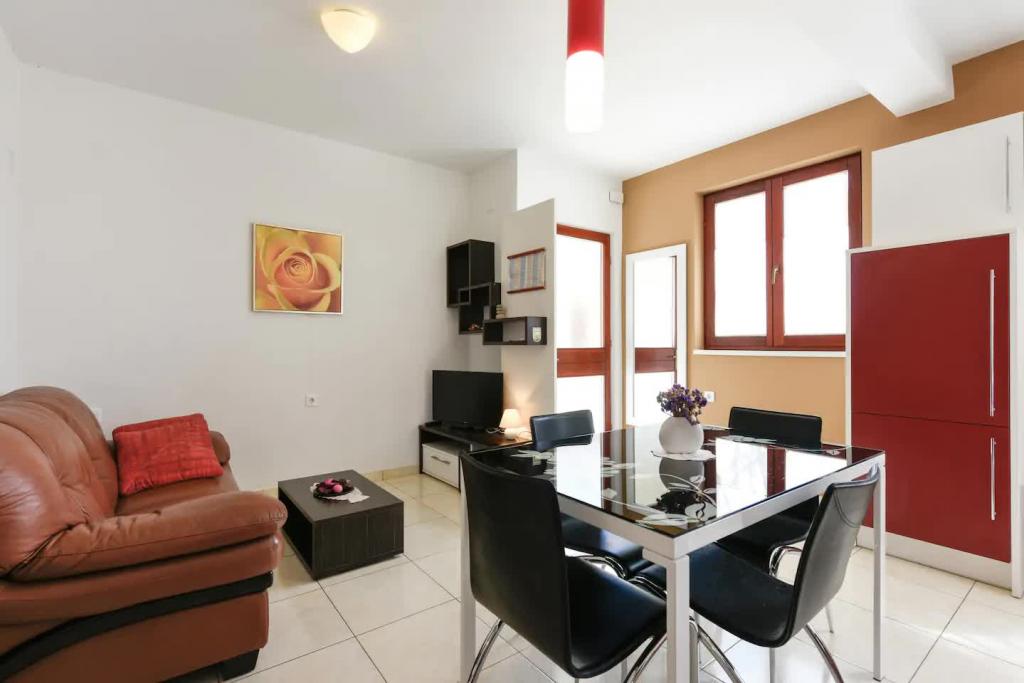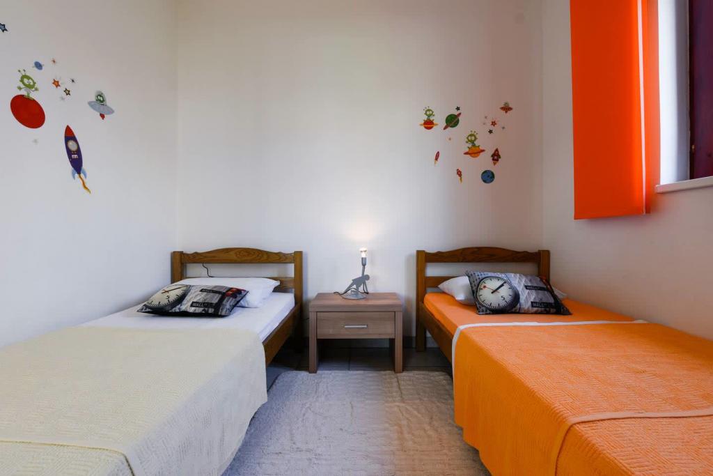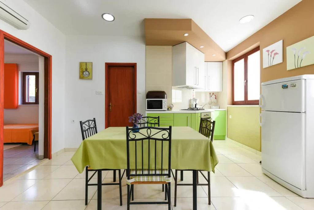 Appartements neufs et joliment meublés au rez-de-chaussée d'une maison familiale, à quelques pas de la magnifique plage de Jaz, qui porte le drapeau bleu et dispose d'un terrain de volley-ball. Il y a des restaurants et des cafés à proximité immédiate, et une aire de jeux pour enfants se trouve à seulement une vingtaine de mètres. Chaque appartement dispose de sa propre grande terrasse avec vue sur la mer. Les appartements disposent de deux chambres, d'une cuisine équipée, d'une salle de bain, d'un salon, d'un barbecue extérieur et d'un parking privé. Le cadeau de bienvenue est inclus dans le prix