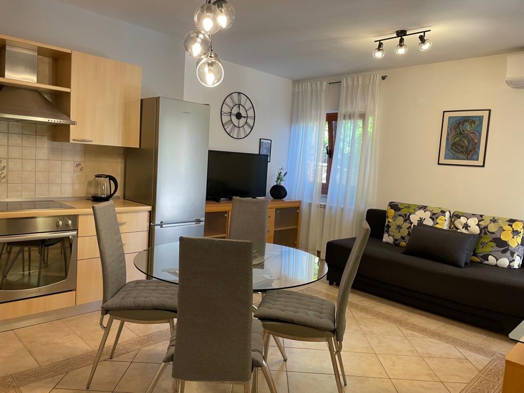 J'ai séjourné dans l'appartement avec ma famille (2+3) la semaine dernière de juin 2023. Équipement et état de l'appartement comme décrit, tout comme sur les photos. Très bon emplacement, proche du centre de Premantura, mais loin de l'agitation. Une base idéale pour explorer toute la péninsule. Il y a aussi un jardin avec une petite aire de jeux, où vous pourrez faire une sieste l'après-midi à l'ombre des arbres. Hôtes très serviables et sympathiques. Je le recommande vraiment.