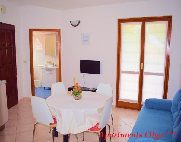 Olga Apartments, situé dans le centre de Premantura (1 min à pied), à proximité du paysage protégé Kamenjak où il y a de belles plages et baies. Situé dans un quartier calme de Premantura, mais à proximité du centre où il y a des restaurants, des magasins, des bars et d'autres installations. Les appartements sont joliment décorées et spacieuses avec SAT / TV, climatisation, cafetière, WI-FI sûr, gratuit, sèche-cheveux, des serviettes et des draps. Chaque appartement dispose d'un balcon ou d'une terrasse, avec l'équipement nécessaire. Place de parking pour votre véhicule, et une salle pour stocker les vélos et autres équipements. Le prix comprend le nettoyage final. Les appartements situés au deuxième étage ont une vue partielle sur la mer. Les hôtes sont toujours disponibles pour toute information complémentaire et de l'assistance. Appartements DE situé dans un quartier calme de Premantura entouré zalenilom. Centre Premanture est à 5 min à pied Détendez-vous dans nos appartements et passer des vacances en Istrie heureux et satisfaits.