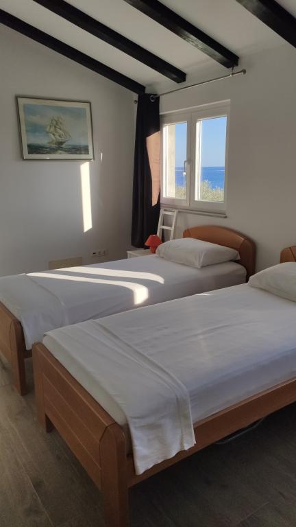 Haus Grego est fortement recommandé : Petite maison meublée de façon romantique avec une vue fantastique sur la mer (située directement sur une église romantique) sur la terrasse et le balcon. La maison et la terrasse sont bien équipées avec tout ce dont vous avez besoin, entourées d'oliviers et d'ambiance méditerranéenne. L'eau est rare et donc précieuse sur l'île et vous devriez économiser un peu ! Un petit bémol est un bourdonnement assez fort, que vous entendez souvent la nuit (provenant probablement des pompes à eau / citernes) et les matelas pourraient être un peu meilleurs. Petar a aménagé la terrasse avec un grand ensemble de chaises et de chaises longues et est disponible tout au long de votre séjour ou viendra vous chercher au ferry ! Nous serons de retour!