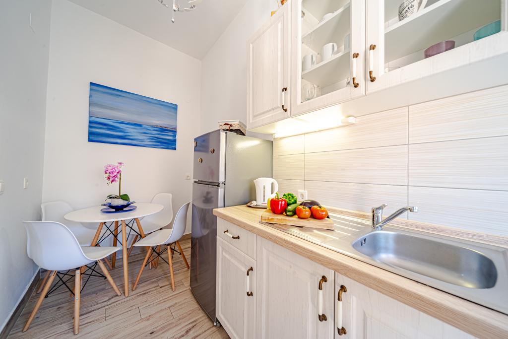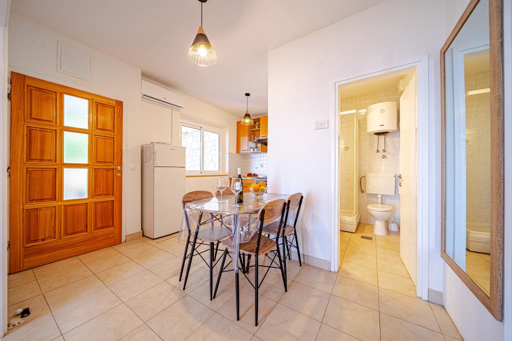 L'emplacement est unique, la mer est excellente, l'appartement est propre, terrasse spacieuse, excellente vue sur la mer à côté du café sur la terrasse avec sièges, hôtes très sympathiques, taverne - pizzeria sur place avec une cuisine très savoureuse et un service très sympathique . Hautement recommandé!