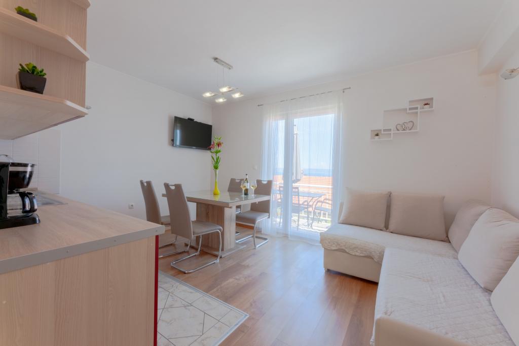 Nous sommes une famille avec deux enfants et nous sommes restés dans les appartements sur le où nous trouvons la paix, la tranquillité et des vacances détendues. L'emplacement est izvanredna- pour ceux qui préfèrent une plage rocheuse en face de la maison, puis (apx 30 mètres) que vous avez, et l'autre à 100m de la maison est une petite ville plage sur laquelle vous avez disponible à la location de parasols et de chaises de plage. Les hôtes ont été composées, poli et très sympathique quand nous avons été accueillis avec des coquilles stockées maison (en haut de la partie supérieure ont été), les figues, l'huile et l'eau de vie. L'appartement est le même et même mieux que les photos. Propre, soigné avec terrasse et vue sur la mer. Nous recommandons vivement à tout le monde. Vous ne pouvez pas vous tromper si vous choisissez cet établissement. Natasa-Macédoine