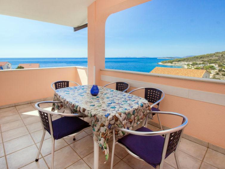 Chers hôtes, l'appartement Anita est situé à Dolac, près de Primošten, et offre une vue imprenable sur la mer et les couchers de soleil. Entièrement meublé, cet appartement (ID : 70850) se trouve au dernier étage. Il comprend un séjour/salle à manger avec un canapé (150 cm), une chambre avec un lit double, une cuisine entièrement équipée, une salle d'eau avec WC, un balcon meublé et un accès direct à celui-ci. Une place de parking gratuite est réservée. Vous trouverez également un parking dans l'immeuble. À votre disposition : douche extérieure, lave-linge (avec supplément) et Wi-Fi gratuit. Dolac (où se situe l'appartement) est à 3 km de Primošten, à 10 km du centre de Rogoznica, à 150 m de la mer, à 500 m des commerces, à 3 km d'un supermarché, à 150 m d'un restaurant, à 250 m d'un bar de plage, à proximité de trois plages de galets (entre 200 et 300 m), d'une plage de rochers et d'une piste cyclable (à 150 m).