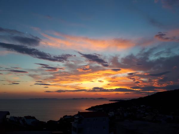 Pique-nique et après un premier mai. Un endroit magnifique et surtout tranquille. Plages à une distance de 300-400 mètres, il y a aussi des pubs où vous pouvez facilement manger tout en admirant les couchers de soleil. Un super endroit pour se détendre avec les enfants et les animaux - nous étions ici avec deux chats et il n'y a pas de problème ou de frais supplémentaires. Il y a tout ce dont nous avions besoin - une cuisine entièrement équipée, wifi, TV, grill, climatisation et pendant cette période des roses parfumées sur le balcon. Accueillir un sourire et des teintures à essayer. L'hôte - très gentil et serviable (nous avons eu un petit problème avec la voiture mais le mécanicien de Tata nous a aidés immédiatement). Nous sommes en Croatie pour la troisième fois (auparavant - Tucepi, Igrane -Seline) et le prix que nous payons pour ces moments de silence et de repos est le plus bas compte tenu des normes. Il y a des endroits qui valent le repos et le silence et des vues, en particulier la Gospa de Loreta (dans la journée et le soir). sont proches des magasins principaux: konzum 10 min ,, tommy 12 et quel marché de poisson le plus important (délicieux grillé) 20 min, alors pourquoi ne pas en vouloir plus merci pour votre hospitalité