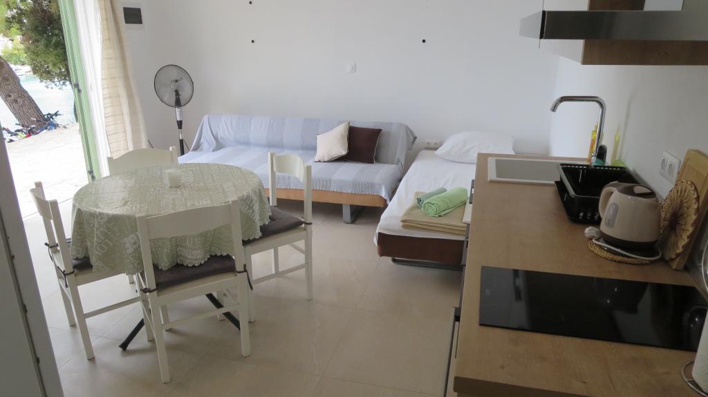 Je le recommande vivement. (vacances 02-11.07 2020) Un petit endroit calme. Un endroit idéal pour se reposer en famille. Si vous recherchez le confort et la tranquillité d'esprit, vous êtes au bon endroit. Le restaurant est bien équipé et dispose d'une terrasse avec une belle vue sur la baie. Littéralement quelques étapes et vous êtes dans une eau cristalline. Nous sommes heureux d'être de retour l'année prochaine. Super hôtes