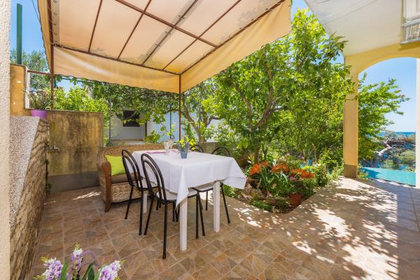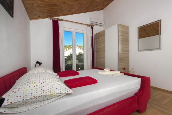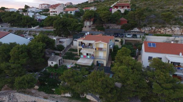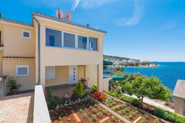 Une maison familiale de trois appartements dans un environnement calme d'une pinède avec vue sur la mer cristalline à 10 mètres. Première rangée vers la mer. Tous les clients disposent d'un parking et de l'utilisation d'un barbecue extérieur, ainsi que d'un endroit pour se reposer à l'ombre des pins. Chaque appartement a sa propre entrée, est équipé de façon moderne (satellite, wi-fi) et dispose d'une terrasse avec vue sur la mer. Une promenade de 5 km de long s'étend le long de la mer, propice au jogging, à la marche ou au vélo, et dans l'arrière-pays du village se trouvent des pistes de VTT. Nous sommes situés à proximité de deux parcs nationaux : NP Krka et NP Kornati, ainsi que des villes de Šibenik, Trogir et Split, qui sont sous la protection de l'UNESCO. Nous vous proposons des vacances agréables et relaxantes dans nos appartements, et nous attendons avec impatience votre arrivée, la famille Marinov Mirela et Branimir